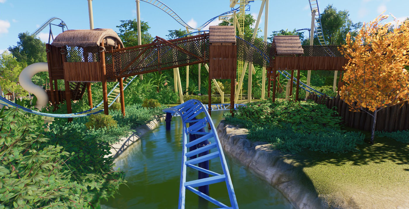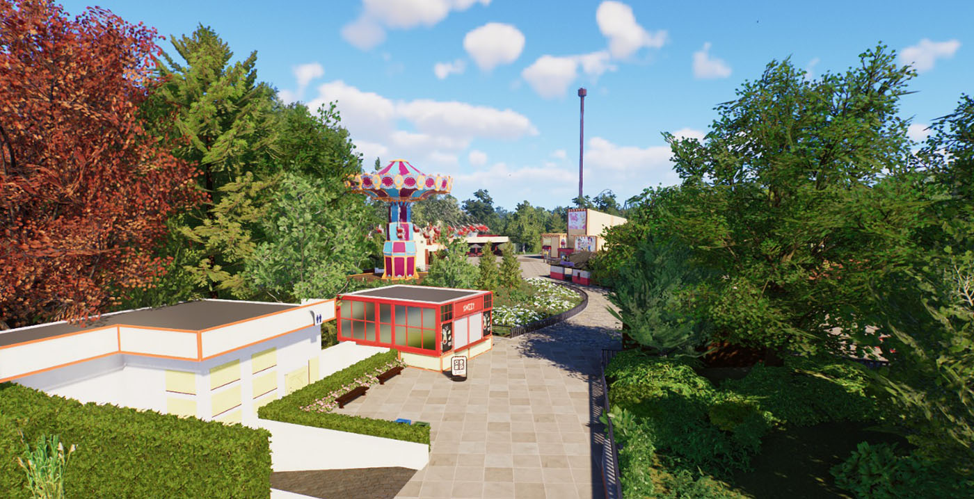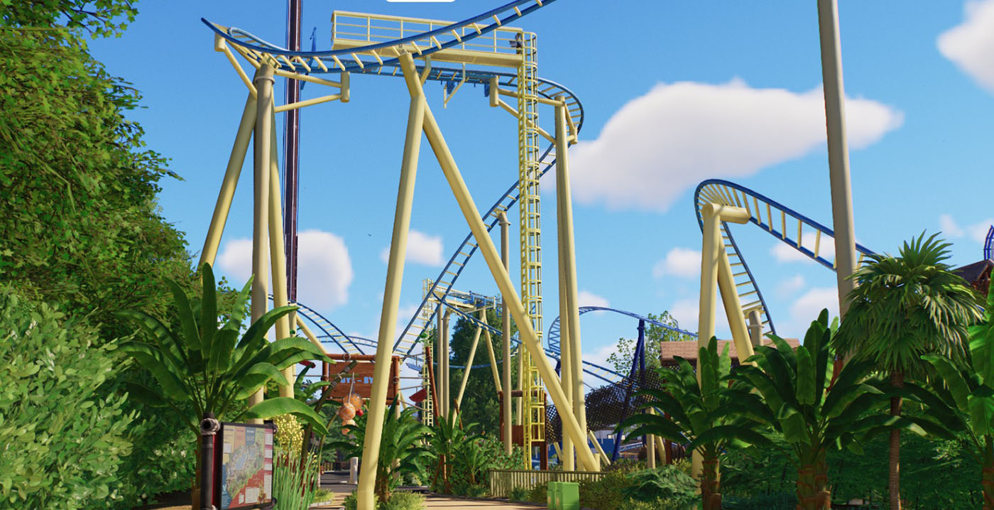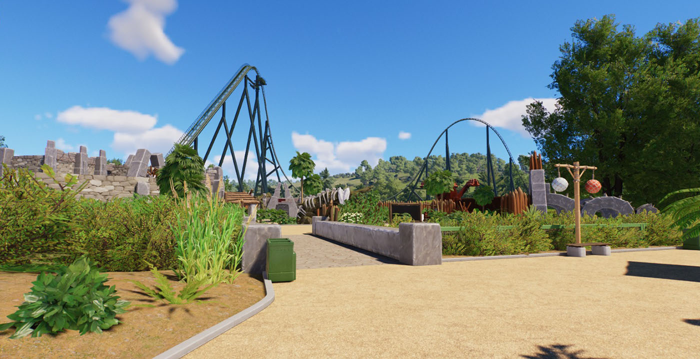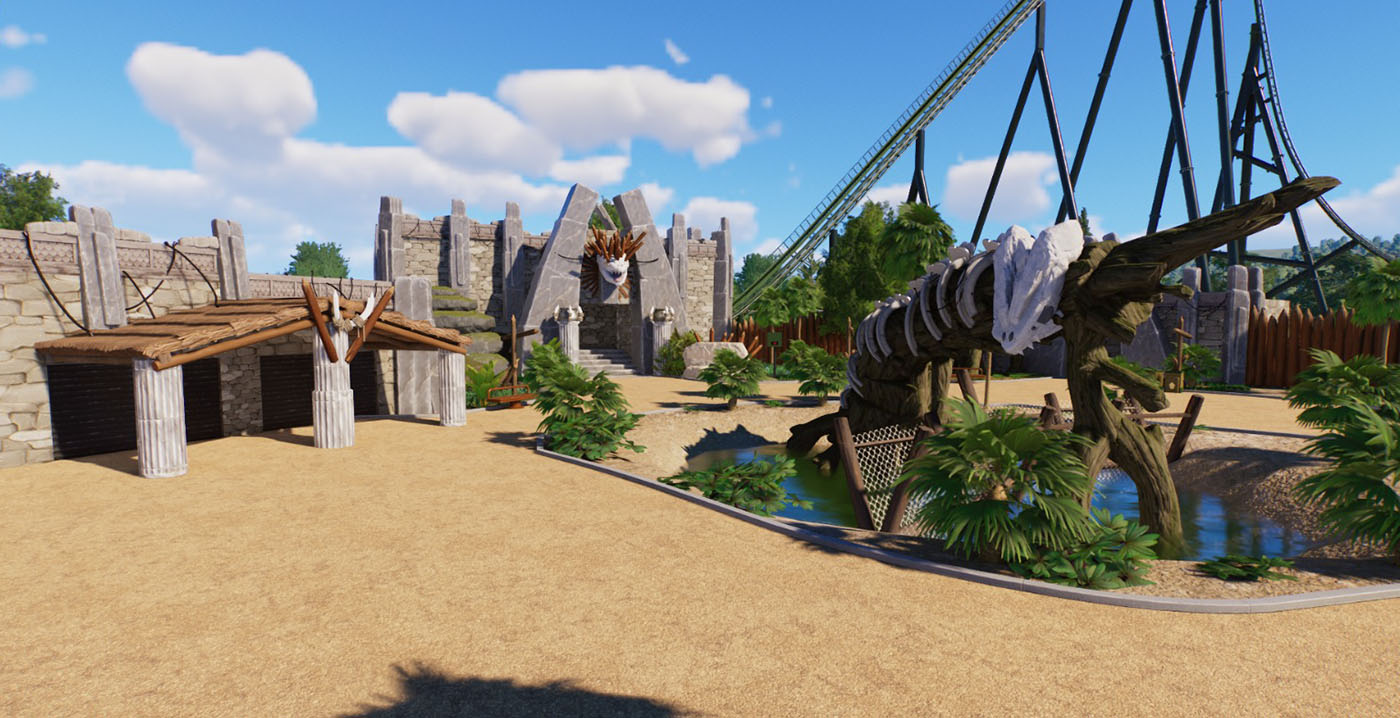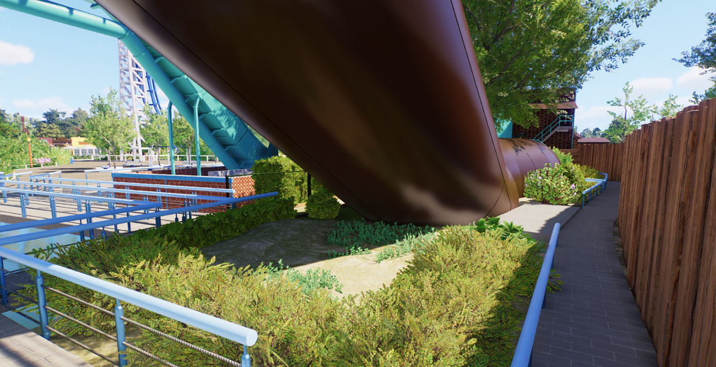 Hier en daar is de maker gebonden aan de beperkingen binnen het spel, bijvoorbeeld op het gebied van attractietypes. In de tussentijd bleef het park zelf ook veranderen. Zo kreeg ook Dock World, een nieuwe zone met familieachtbaan Mecalodon die vorig jaar werd geopend, een plek in de virtuele versie.