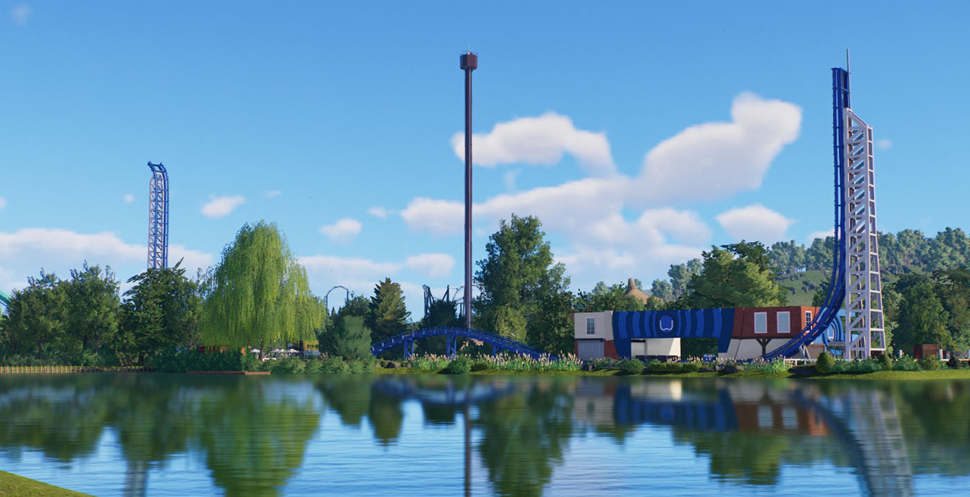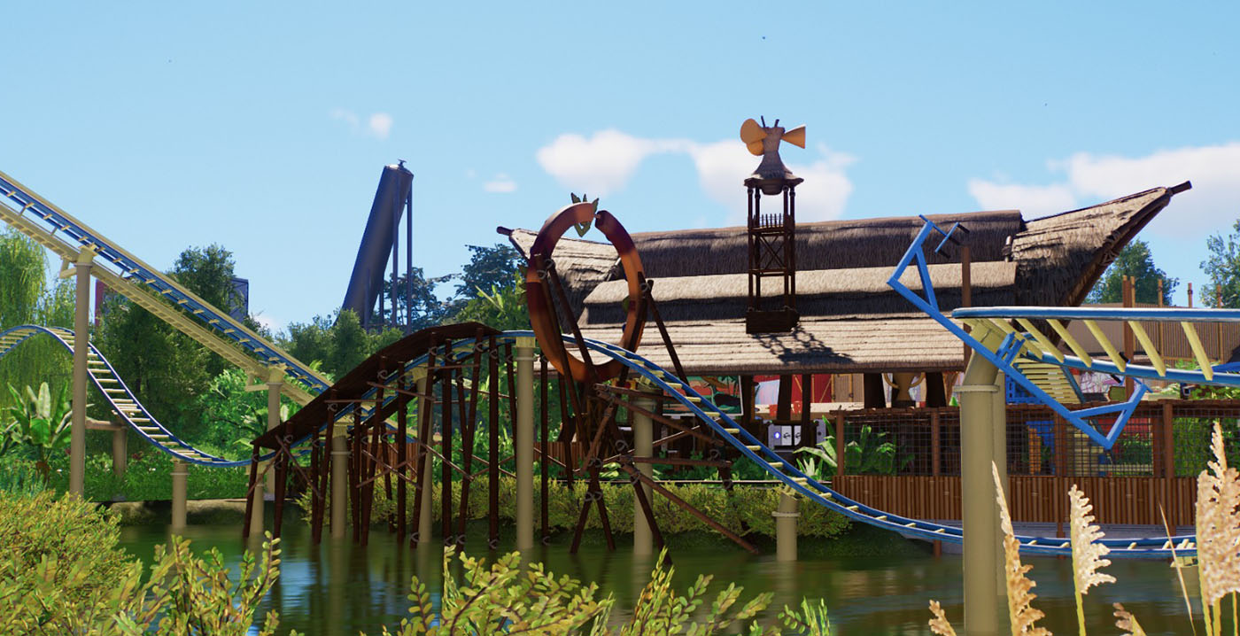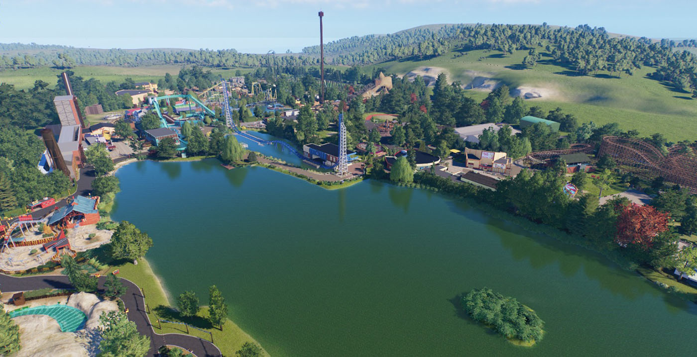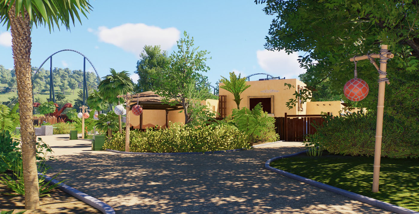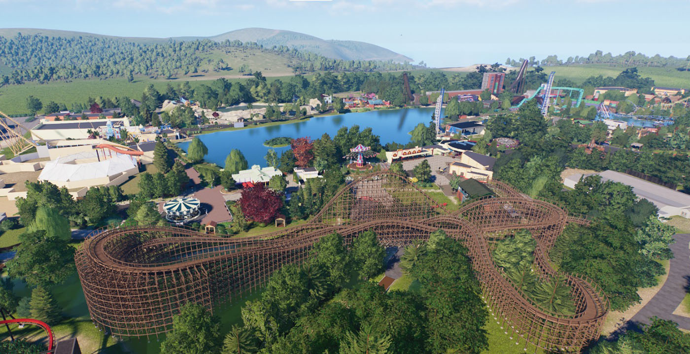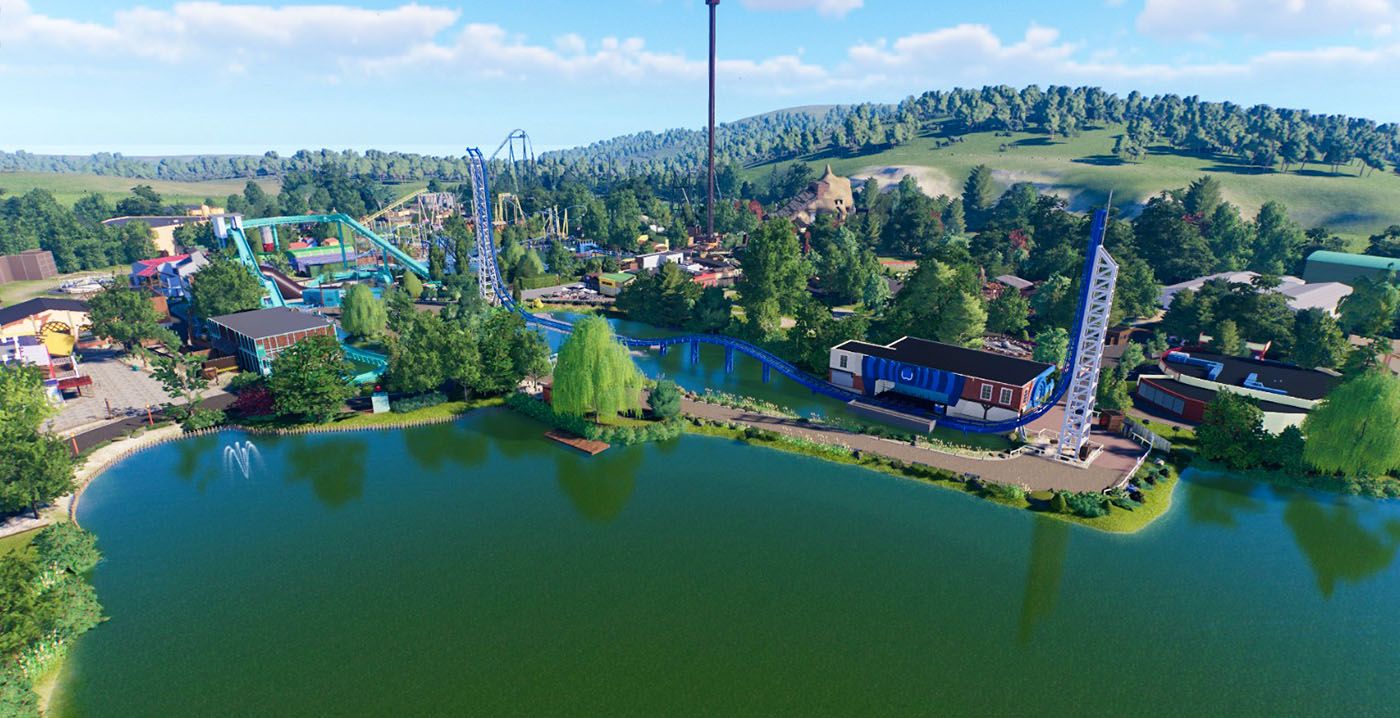 Hier en daar is de maker gebonden aan de beperkingen binnen het spel, bijvoorbeeld op het gebied van attractietypes. In de tussentijd bleef het park zelf ook veranderen. Zo kreeg ook Dock World, een nieuwe zone met familieachtbaan Mecalodon die vorig jaar werd geopend, een plek in de virtuele versie.