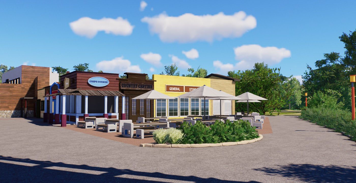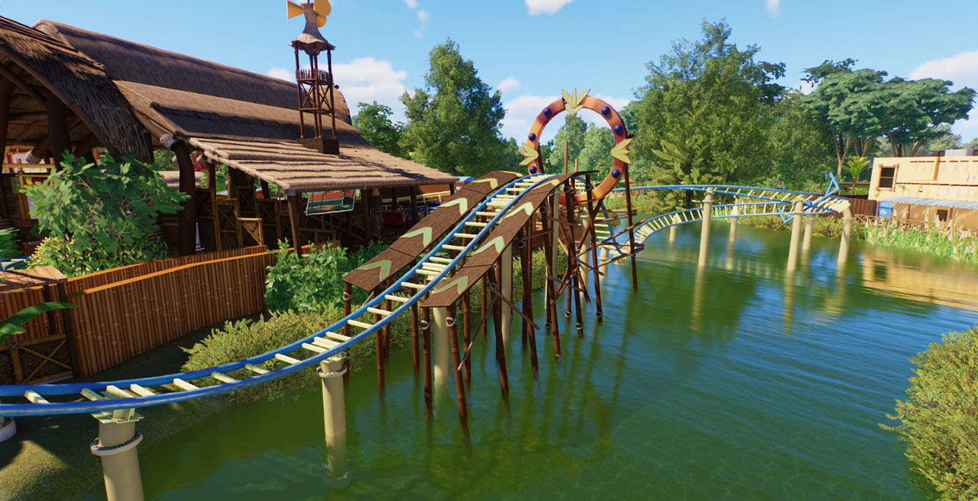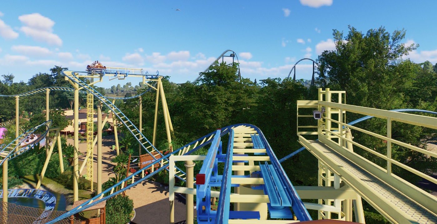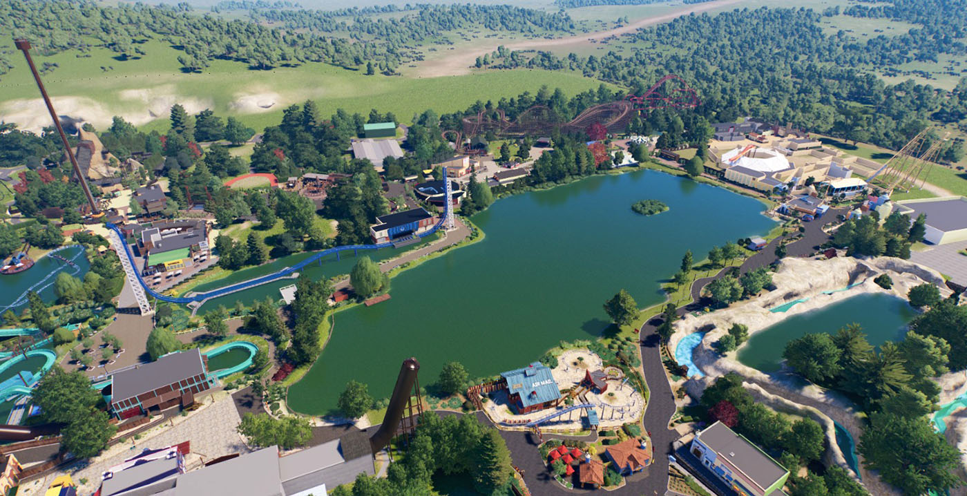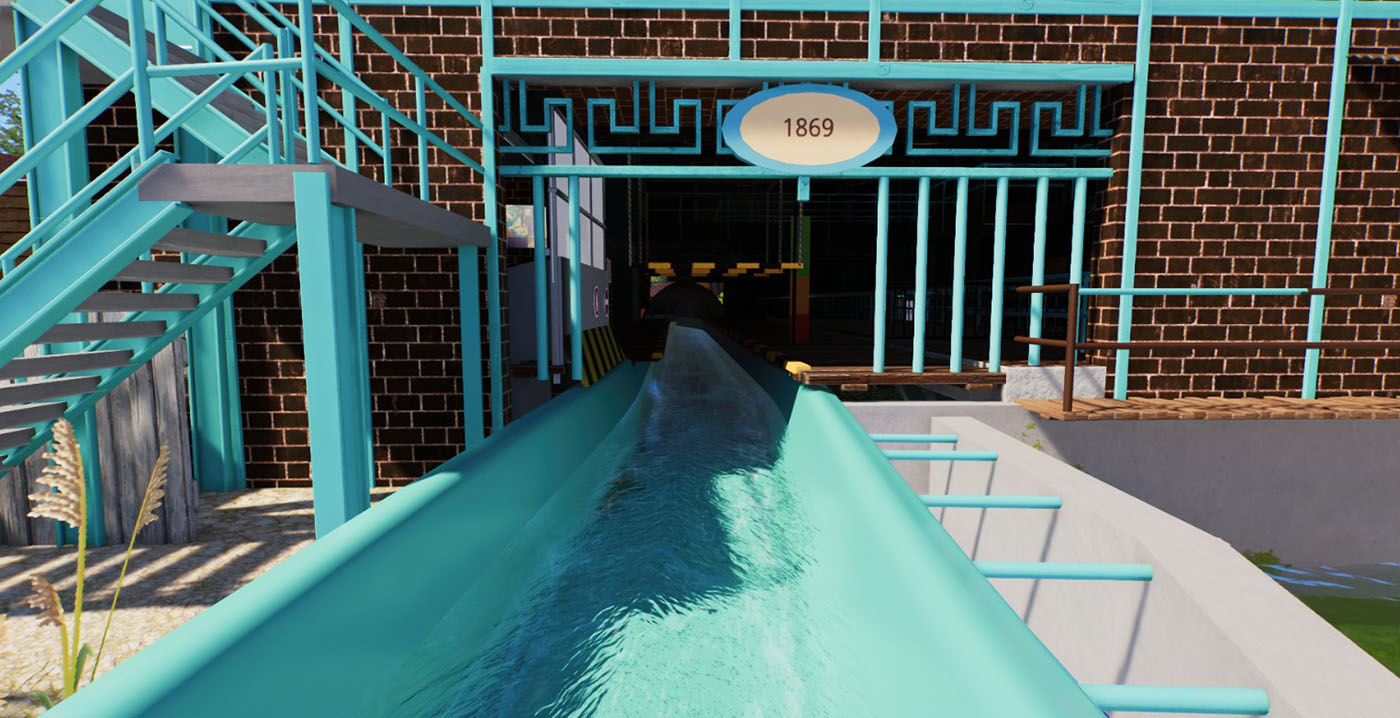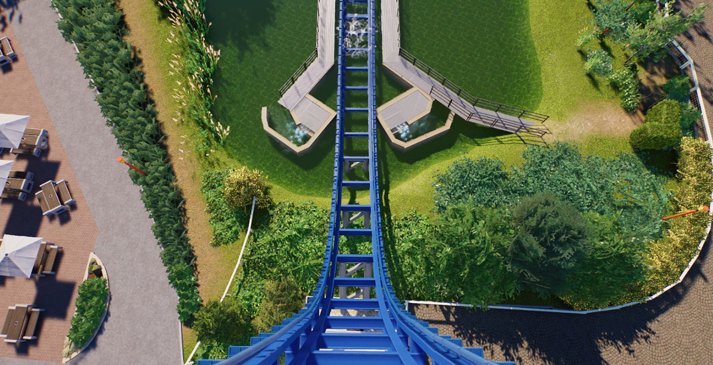 Hier en daar is de maker gebonden aan de beperkingen binnen het spel, bijvoorbeeld op het gebied van attractietypes. In de tussentijd bleef het park zelf ook veranderen. Zo kreeg ook Dock World, een nieuwe zone met familieachtbaan Mecalodon die vorig jaar werd geopend, een plek in de virtuele versie.