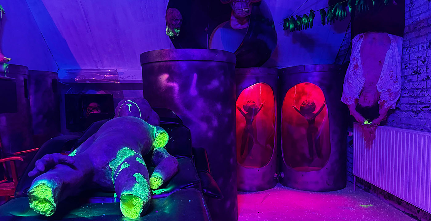 FOTO'S In het Drentse attractiepark Drouwenerzand worden de laatste voorbereidingen getroffen voor Halloween: volgende week gaat het vernieuwde horror-evenement Lost in the Park van start. Op vijf dagen in oktober opent het pretpark onder meer twee spookhuizen, twee scare zones en een afgrijselijke dinner experience.