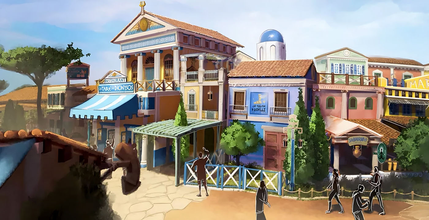 Ook komt er een aanzienlijk bedieningsrestaurant met honderden zitplaatsen en een mediterrane keuken: La Table de Dionysos, gelegen bij het Théâtre de Poséidon. Het Griekse eiland Symi diende als inspiratiebron. De voorbereidende werkzaamheden voor het project zijn inmiddels gestart. Parc Astérix werkt toe naar een opening in het voorjaar van 2027.