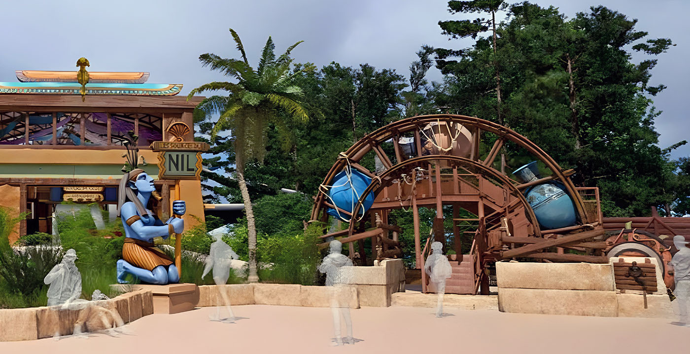 Verder gaat de bestaande waterbaan L'Oxygénarium (1999) dan door het leven als La Descente du Nil. Bezoekers volgen een expeditie naar de bron van de Nijl, met nieuwe decors. Een make-over komt er ook voor de grote circustent in de themazone, die fungeert als buffetrestaurant. Het circus behoudt dezelfde functie, maar dan onder de naam Restaurant Les Comptoirs d'Epidemaïs.