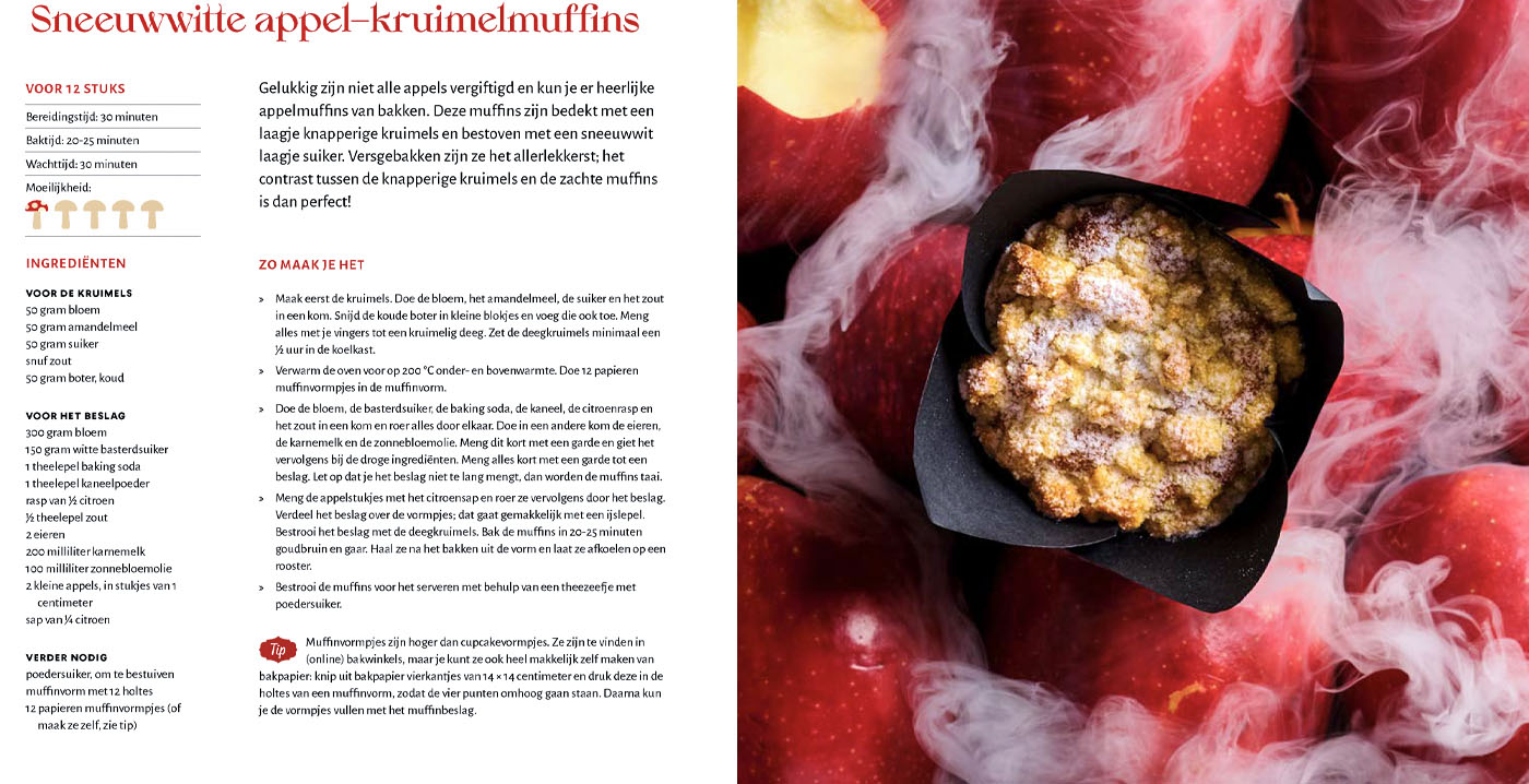 Verder bevat het kleurrijk vormgegeven hardcoverboek illustraties van Job van Gelder en Laury Tinnemans, fotografie van Saskia Lelieveld en styling van Nicole de Werk. Het 160 pagina's tellende Efteling-sprookjesbakboek is bedoeld voor gezinnen met kinderen vanaf 6 jaar. De verkoopprijs bedraagt 24,99 euro.