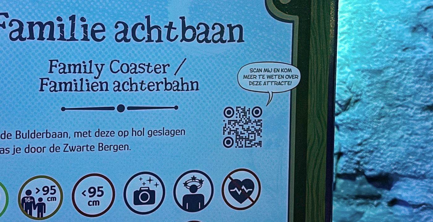 Bij nagenoeg alle attracties in het pretpark kunnen bezoekers met hun mobiele telefoon een QR-code op het informatiebord bij de wachtrij scannen. Wie dat doet, krijgt vervolgens het verhaal achter de attractie te lezen, afkomstig uit het werk van wijlen bedenker Marten Toonder.