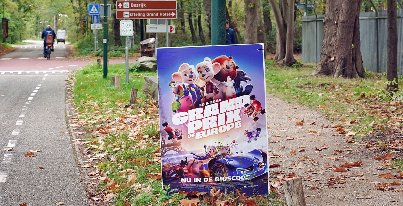 Voor een bioscoopfilm gebaseerd op het Duitse pretpark Europa-Park is een opvallende reclameplek gekozen. Een poster voor de animatiefilm Grand Prix of Europe, met in de hoofdrollen Europa-Park-mascottes Ed en Edda, verscheen deze week achter de Efteling, ter hoogte van de Eftelingsestraat.