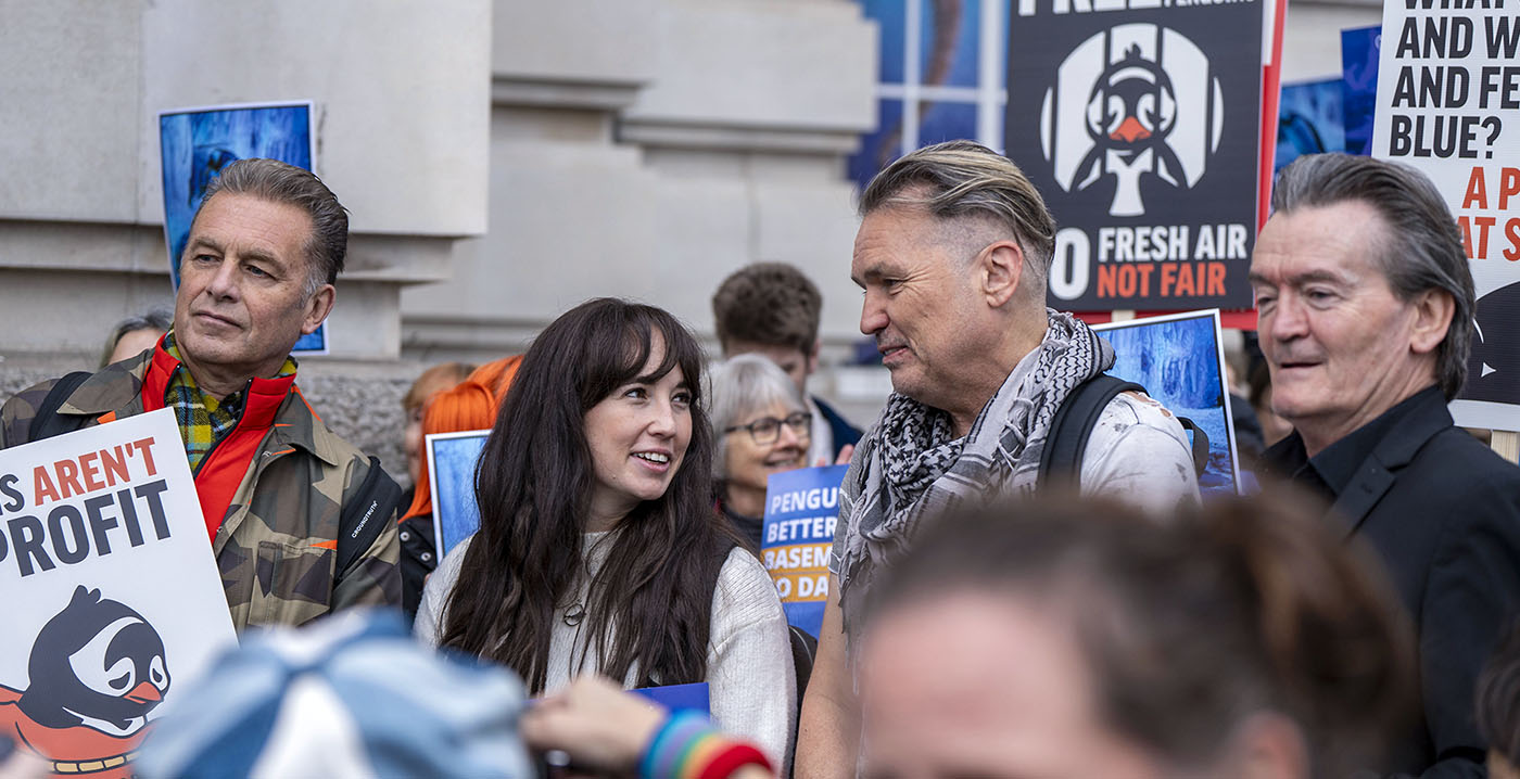 FOTO'S Dierenrechtenorganisaties en Britse beroemdheden hebben dit weekend geprotesteerd bij Sea Life London. Zij eisen dat vijftien ezelspinguïns worden vrijgelaten uit het kelderverblijf van de toeristische attractie in hartje Londen. Volgens de actievoerders leven de dieren al veertien jaar in een ruimte zonder daglicht of frisse lucht.