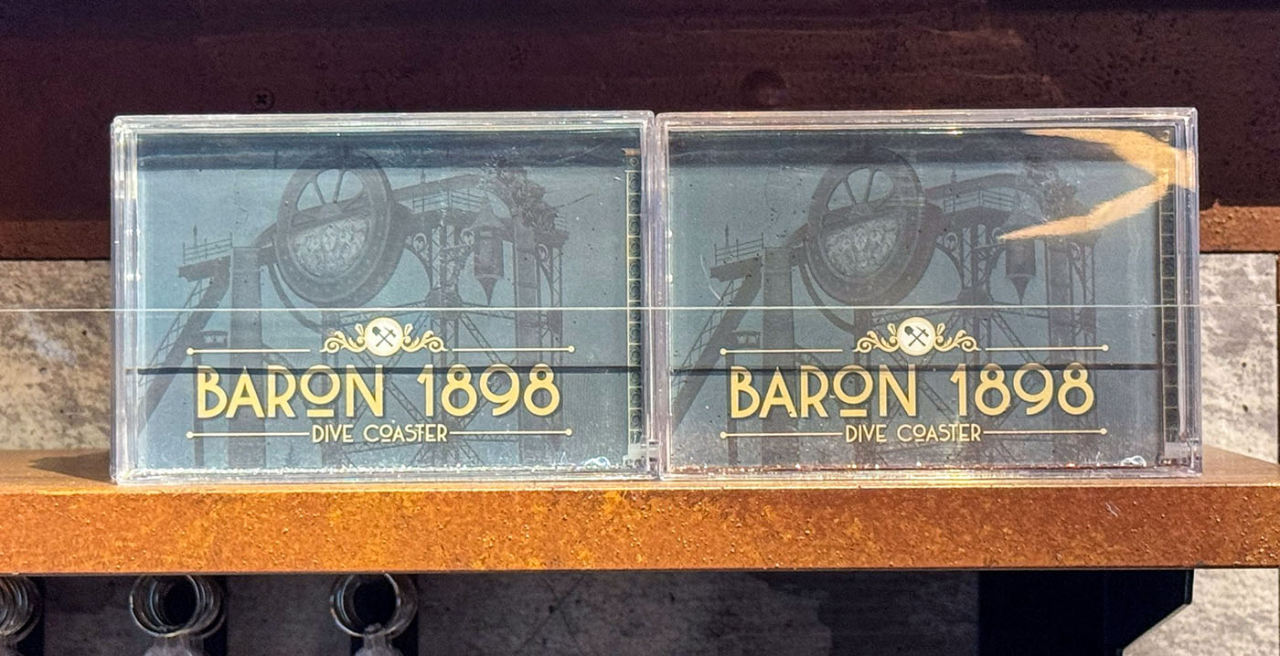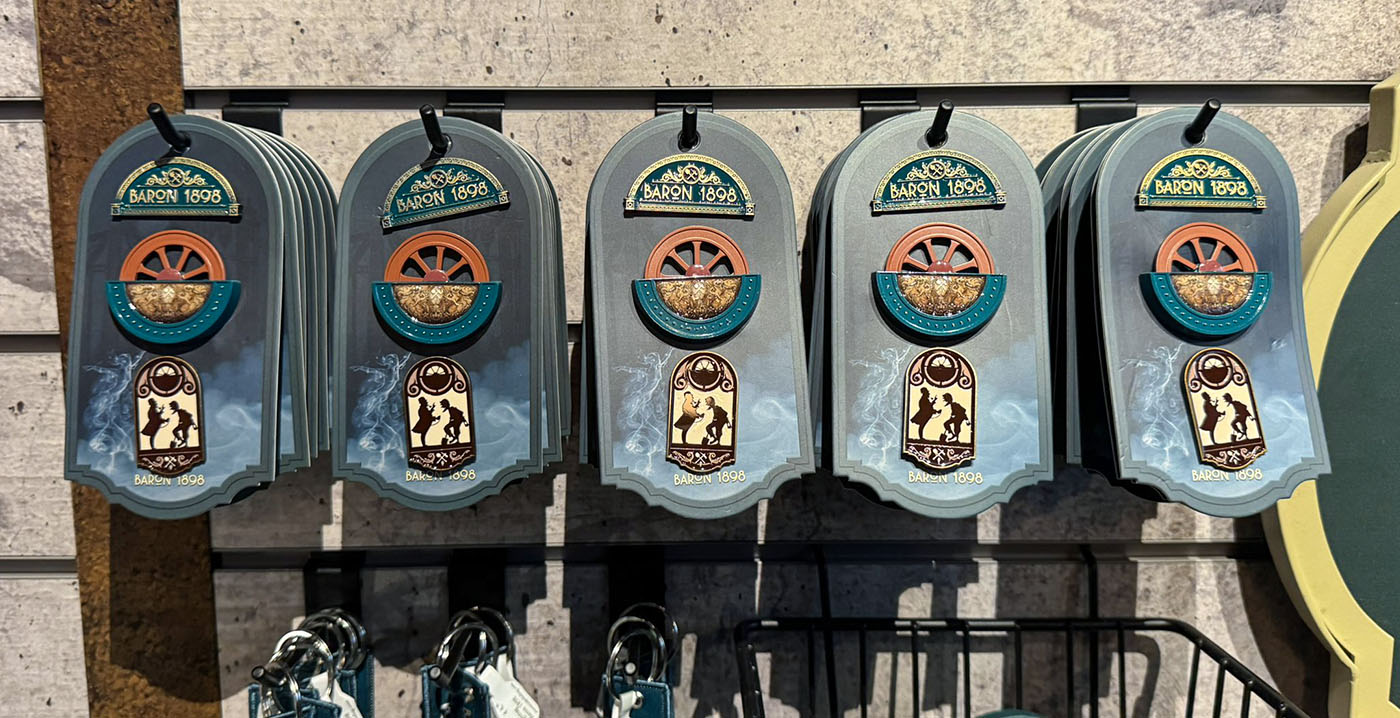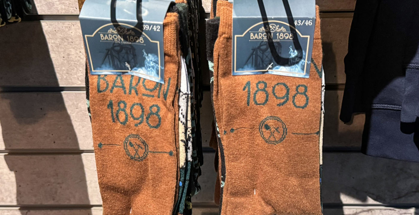 Er zijn nieuwe Baron-souvenirs verkrijgbaar, waaronder pins. Voor 20 euro kunnen Efteling-fans een set van drie pins mee naar huis nemen. Daarop zien we het logo van Baron 1898, het wiel van de schachttoren en een ontwerp met silhouetten van een mijnwerker en mijnbaron Gustave Hooghmoed.