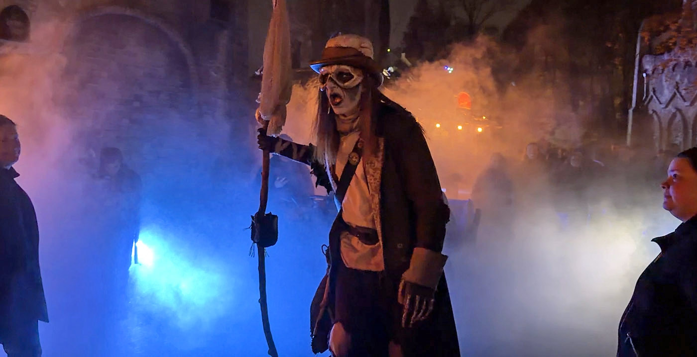 Hij stuurt toeschouwers vervolgens richting Danse Macabre, waar De Huyveraars zich laten zien. Onderweg passeren bezoekers feeërieke lichteffecten in de struiken: draaiende bundels van lichtstralen. Rookmachines zorgen voor een mystieke sfeer. Bij Max & Moritz kunnen voorbijgangers Bakker Krümel en Frau Schmetterling tegen het lijf lopen.