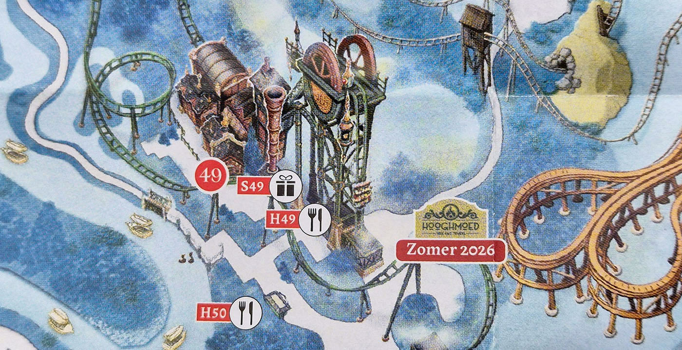 FOTO'S De nieuwe Efteling-attractie Hooghmoed wordt vanaf vandaag vermeld op de parkplattegrond. In de zomer van 2026 openen naast achtbaan Baron 1898 drie vrijevaltorens voor families. Op dit moment werkt men aan de fundering. Op de winterse versie van de kaart prijkt het logo van de toevoeging, dat we nog niet eerder hebben gezien.