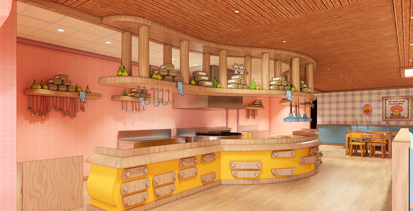 FOTO'S Van het nieuwe Woezel & Pip-pretpark De Tovertuin, dat in het voorjaar van 2026 opengaat, komen steeds meer ontwerpen naar buiten. Op de website van de bestemming én in een making-of-serie op YouTube worden verschillende designs getoond die niet eerder zijn gepubliceerd. Zo zien we attracties, restaurants en decorstukken.