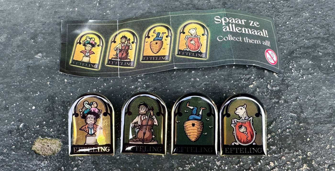 Om duidelijk te maken dat sprake is van verschillende items, voegde de Efteling een papiertje toe met afbeeldingen van alle vier de pins. "Spaar ze allemaal!", staat erop. 2 euro is opvallend goedkoop voor een Efteling-pin: reguliere pins kosten tegenwoordig doorgaans 7,50 tot 8,50 euro, met uitschieters tot 15 euro voor de officiële pin van het Efteling Grand Hotel.