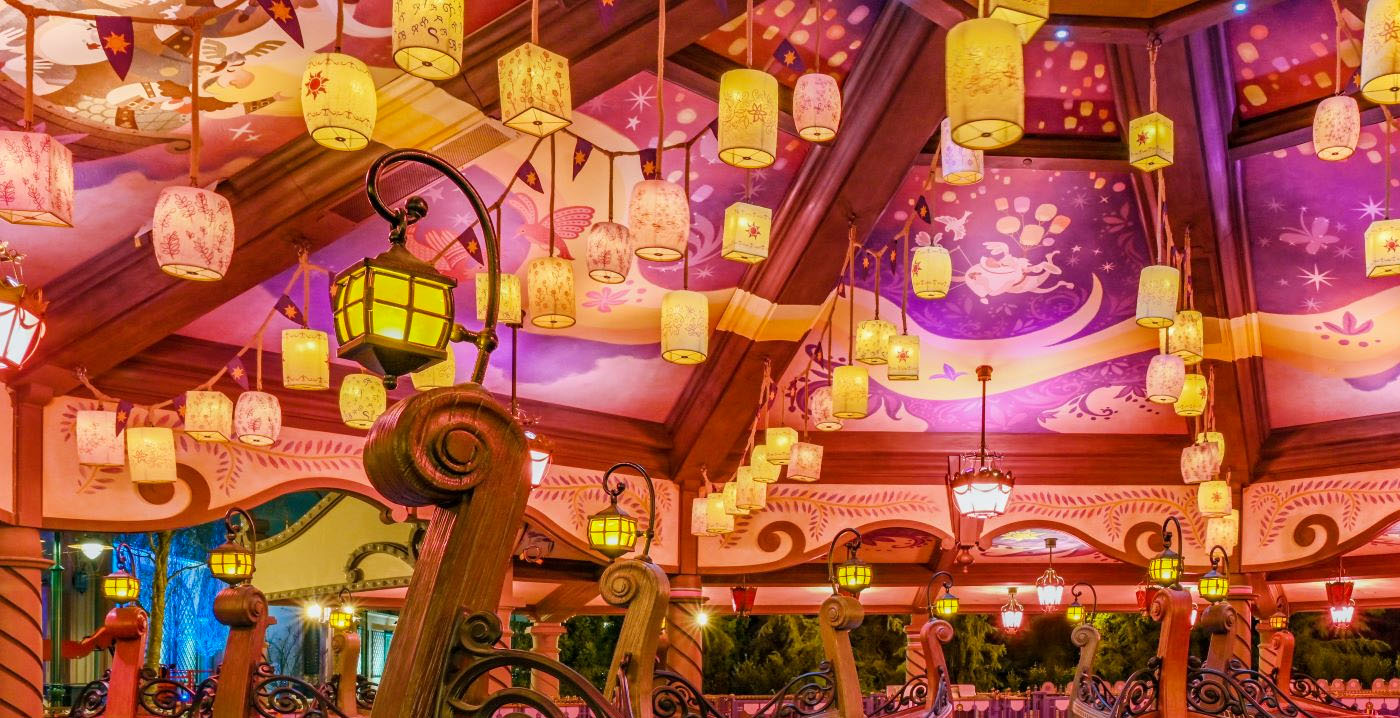 De nu gepubliceerde foto's laten het volledige decor, de verlichting en de afwerking van dichtbij zien. Raiponce Tangled Spin - een attractie van het type tea cup ride - is gebaseerd op de animatiefilm Tangled. Bezoekers nemen plaats in gondels in de vorm van boten, die langzaam ronddraaien onder een dak vol honderden lantaarns.