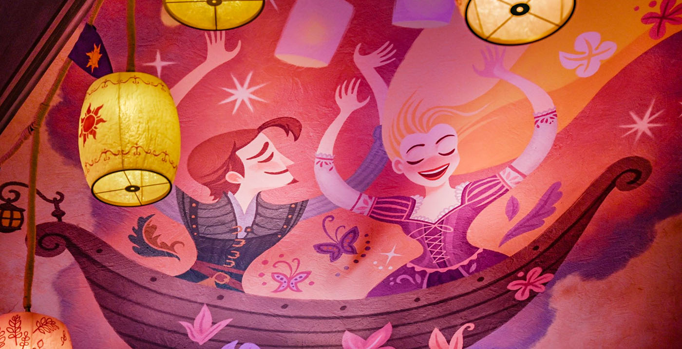 Op het plafond zijn kleurrijke schilderingen te zien met scènes uit het verhaal van Rapunzel en Flynn Rider. Het ontwerp toont veel houtsnijwerk, felle kleuren en warme verlichting, gebaseerd op de iconische lantaarnscène uit de film. De draaiattractie maakt onderdeel uit van Adventure Way, een nieuwe boulevard tussen de parkentree van Disney Adventure World en het grote meer Adventure Bay.