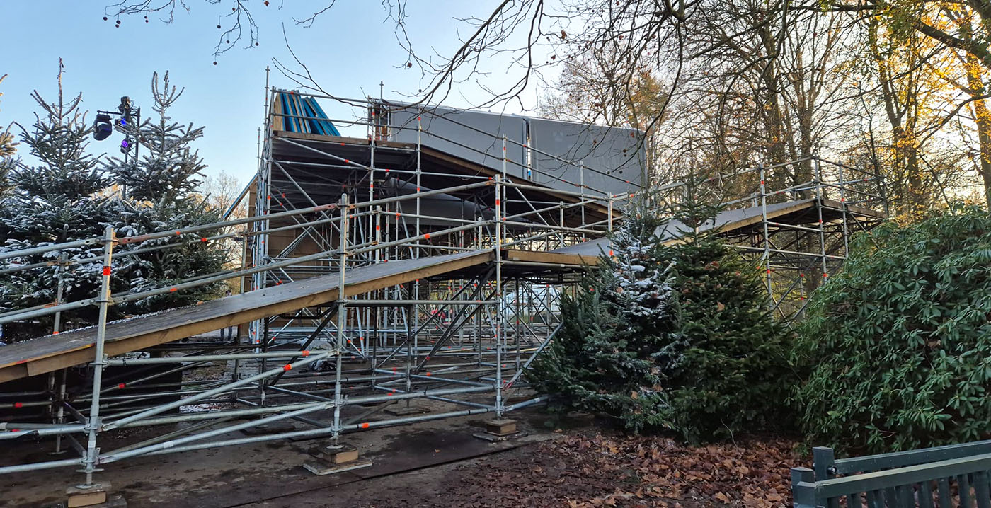 FOTO'S De Winter Efteling is dit jaar opnieuw het toneel van een speciale wintereditie van Te Land, Ter Zee En In De Lucht. Het amusementsprogramma van RTL 4 keert deze maand terug naar het attractiepark voor een nieuwjaarsaflevering, die op donderdag 1 januari op tv komt. Inmiddels is de bouw van het decor gestart.