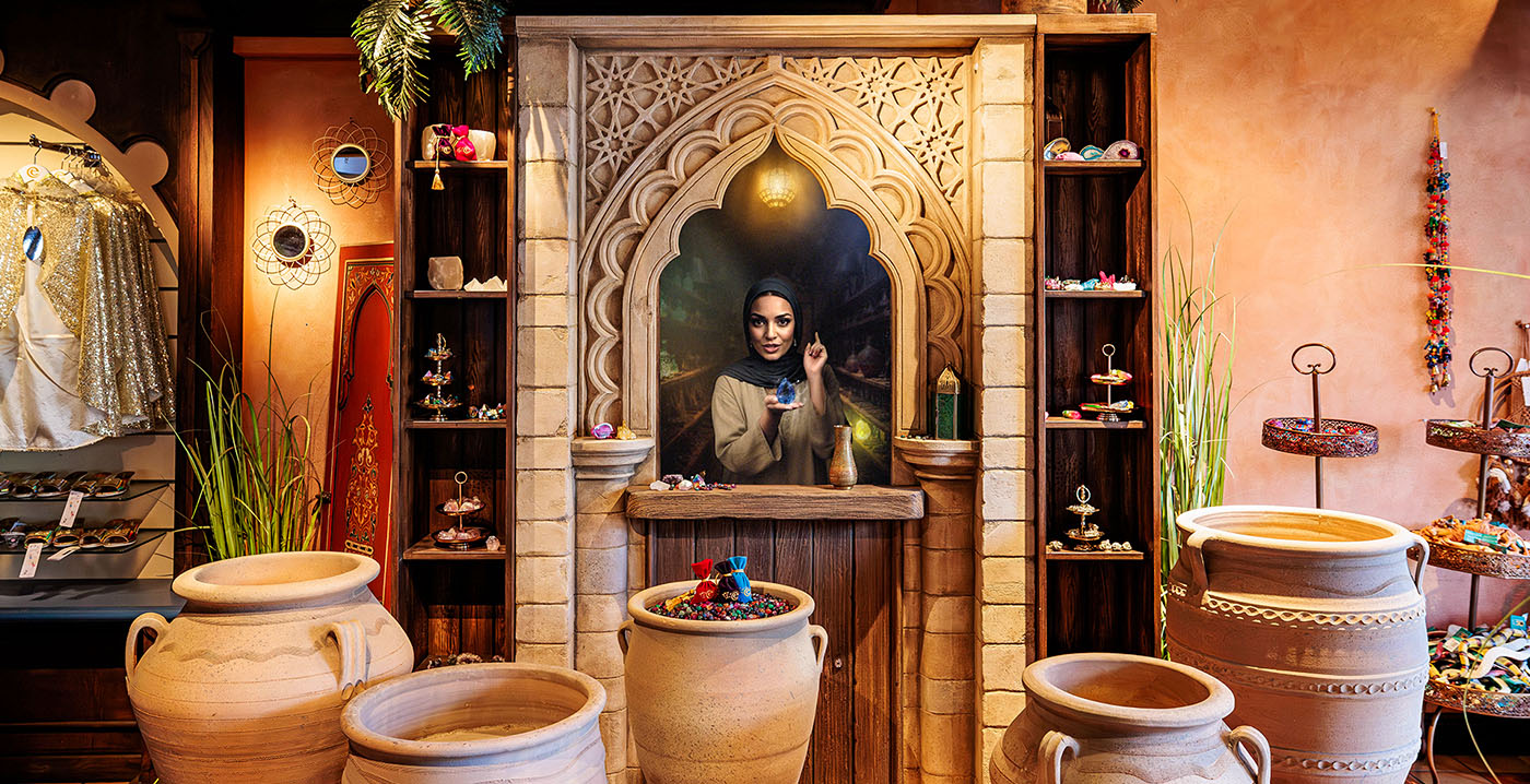 "De handelaren die je in de verboden stad op de markt treft, zie je nu ook in de winkel", zegt de Efteling over de nieuwe marktkraam in de winkel De Bazaar. "Als het luik zich ratelend opent, is het een verrassing welke verkoper het assortiment mysterieuze stenen luidkeels aanprijst."