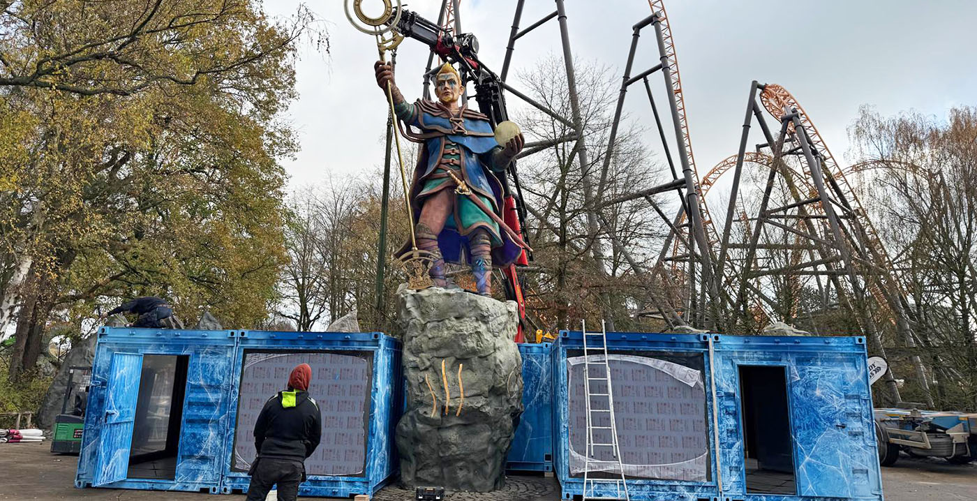 FOTO'S Nog één week geduld: op zaterdag 6 december start de allereerste winteropenstelling van Bobbejaanland. Het Vlaamse attractiepark is druk bezig met de laatste voorbereidingen: verschillende themagebieden ondergaan een gedaantewisseling. Bovendien wordt gezorgd voor uiteenlopende extra activiteiten, waaronder een schaatsbaan op de grote vijver. Looopings keek mee met de werkzaamheden.