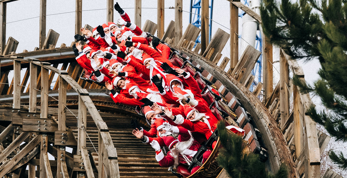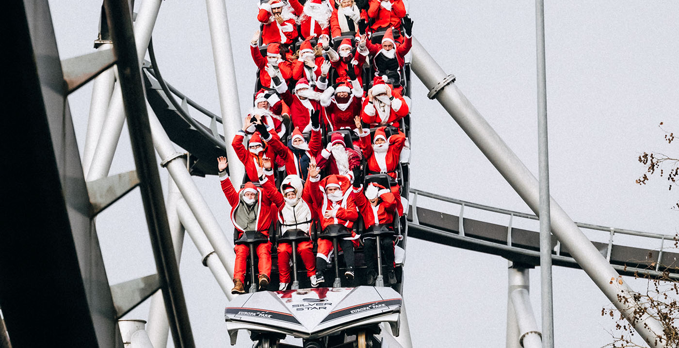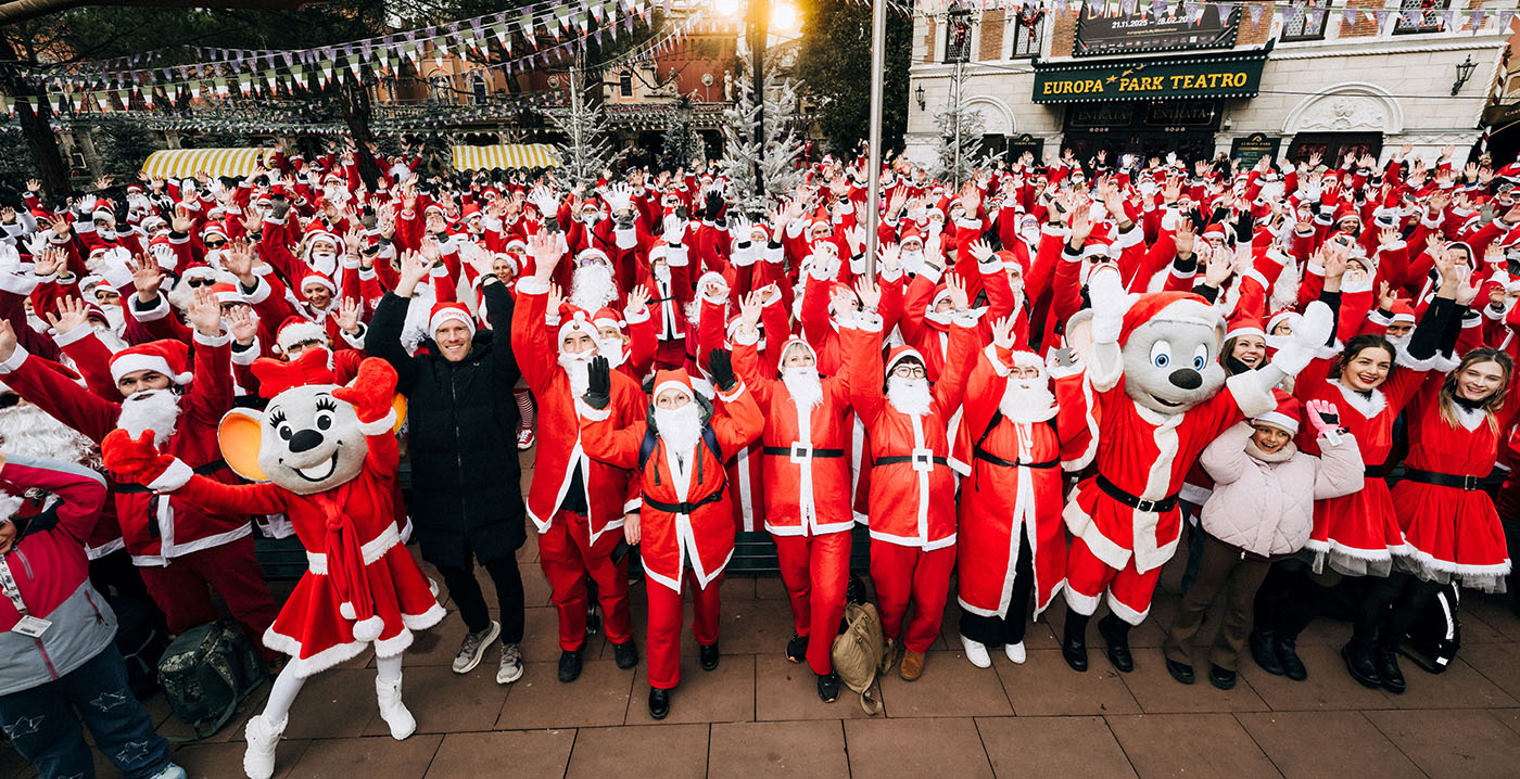 Duizenden kerstmannen nemen achtbanen Europa-Park over bij start winterseizoen