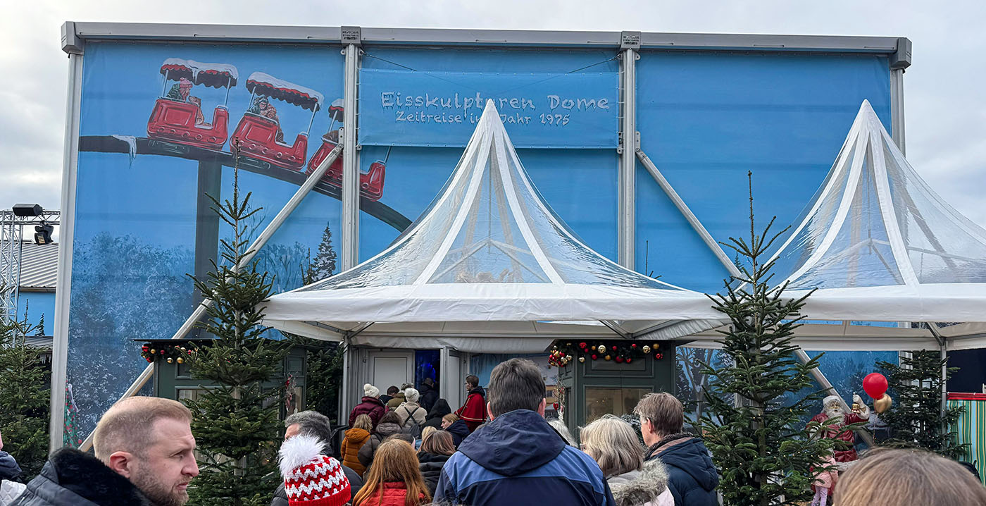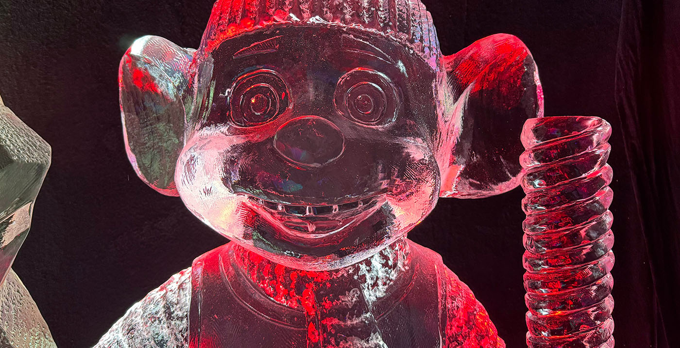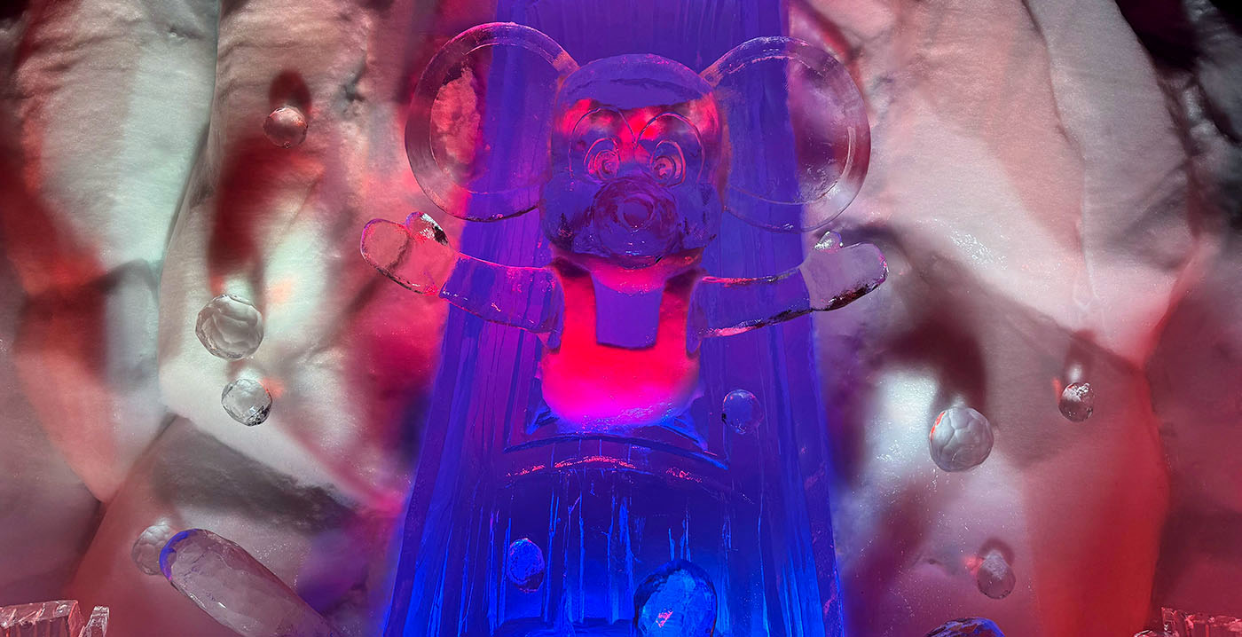 FOTO'S In Europa-Park is deze winter een gratis tentoonstelling met ijssculpturen te vinden. Bezoekers kunnen tijdens het winterseizoen het nieuwe themagebied Winterland betreden, met als hoogtepunt de overdekte beleving Eisskulpturen-Dome - Zeitreise ins Jahr 1975. Verschillende elementen uit de vijftigjarige geschiedenis van Europa-Park zijn uit ijsblokken gehouwen.