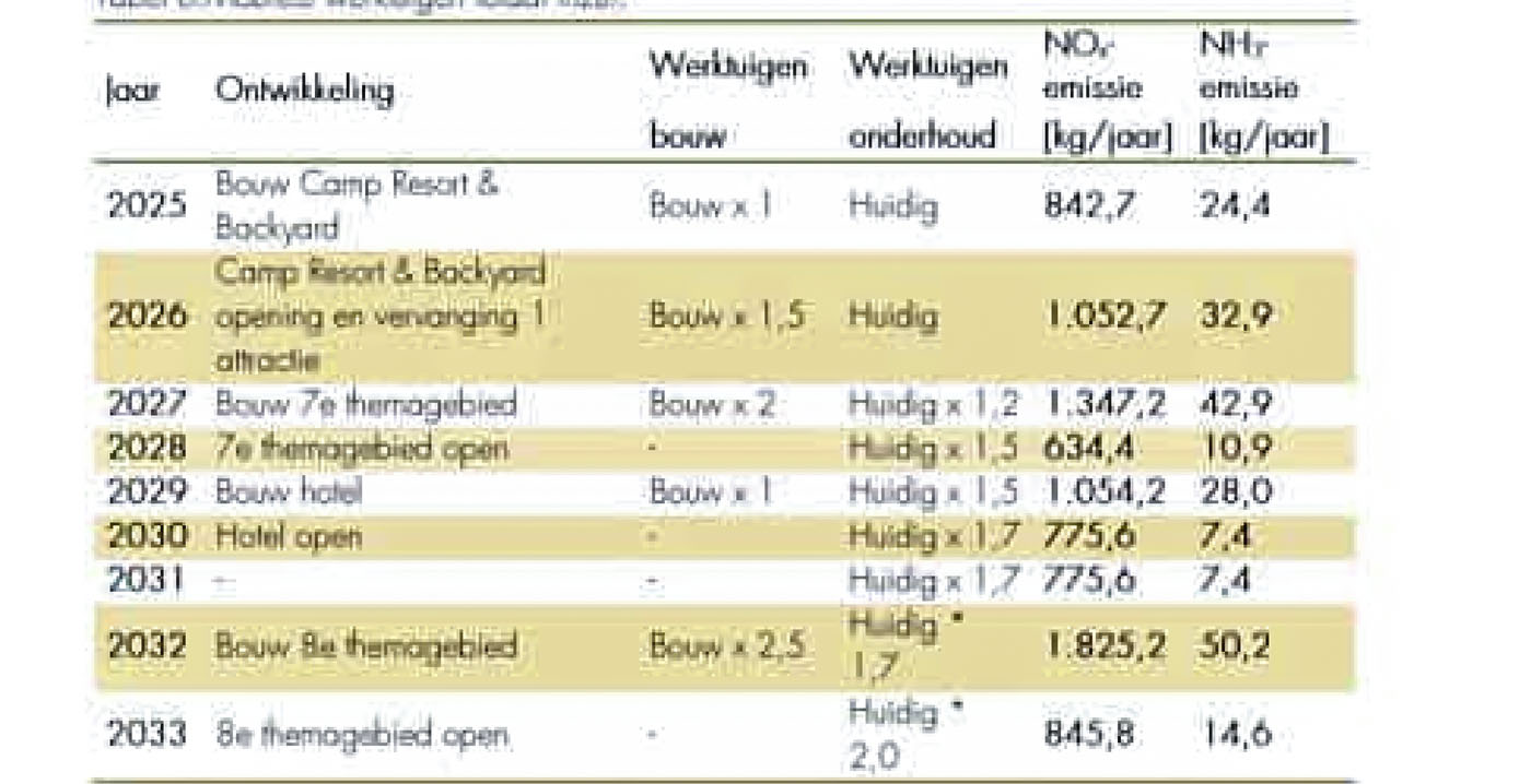 Wat verder opvalt, is dat de jaarplanning is bijgewerkt. Aanvankelijk was het de bedoeling om het Camp Resort in 2024 te bouwen en in 2025 te openen. In datzelfde jaar zou een attractie vervangen moeten worden. Dat is niet gelukt. Een actuelere tabel noemt 2026 als openingsjaar voor het Camp Resort, maar mogelijk is dat inmiddels ook achterhaald.