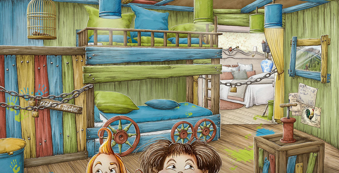 Met een replica van de Boemknaller uit de wachtrij van de attractie laten kinderen hun ouders schrikken. Jonge deugnieten kunnen ook een kijkje nemen in een geheime kast. Enkele elementen blijven nog een verrassing. "Sommige grapjes ontdek je pas als je hier blijft slapen", aldus de Efteling.