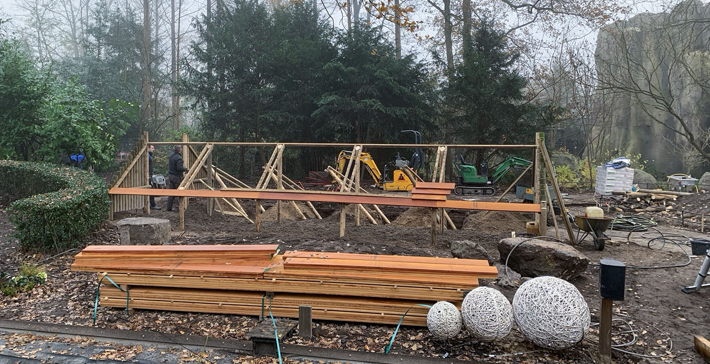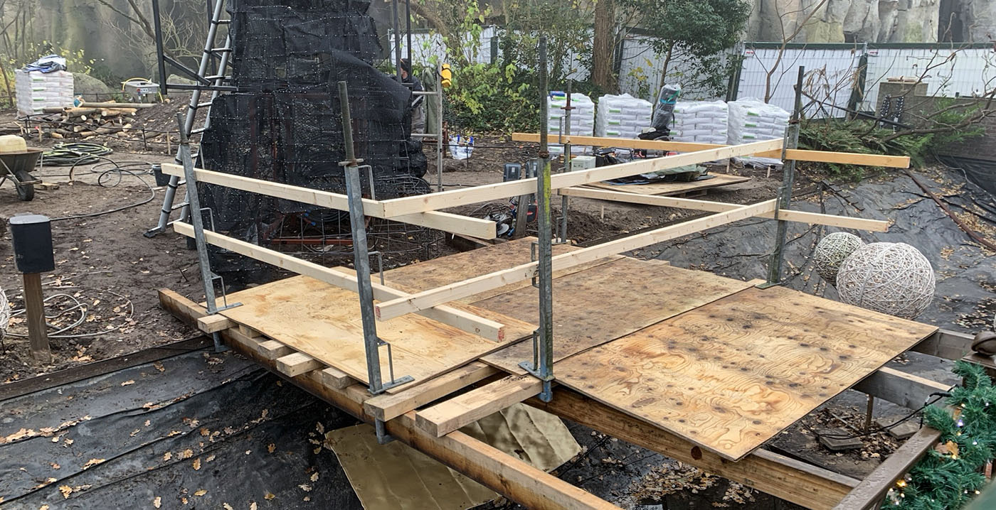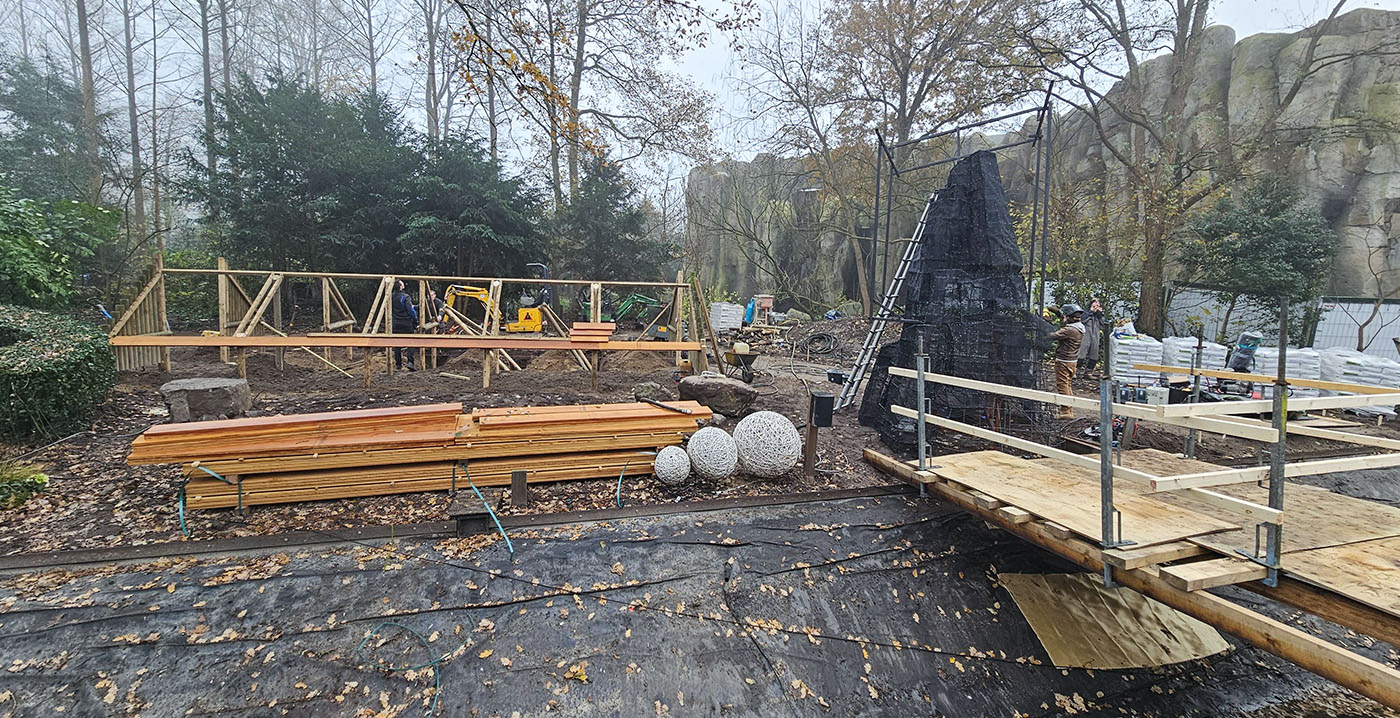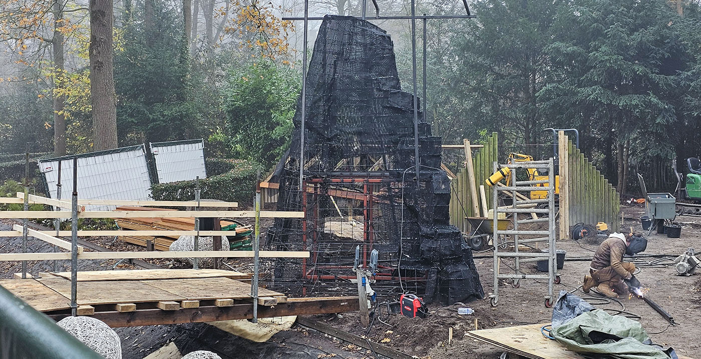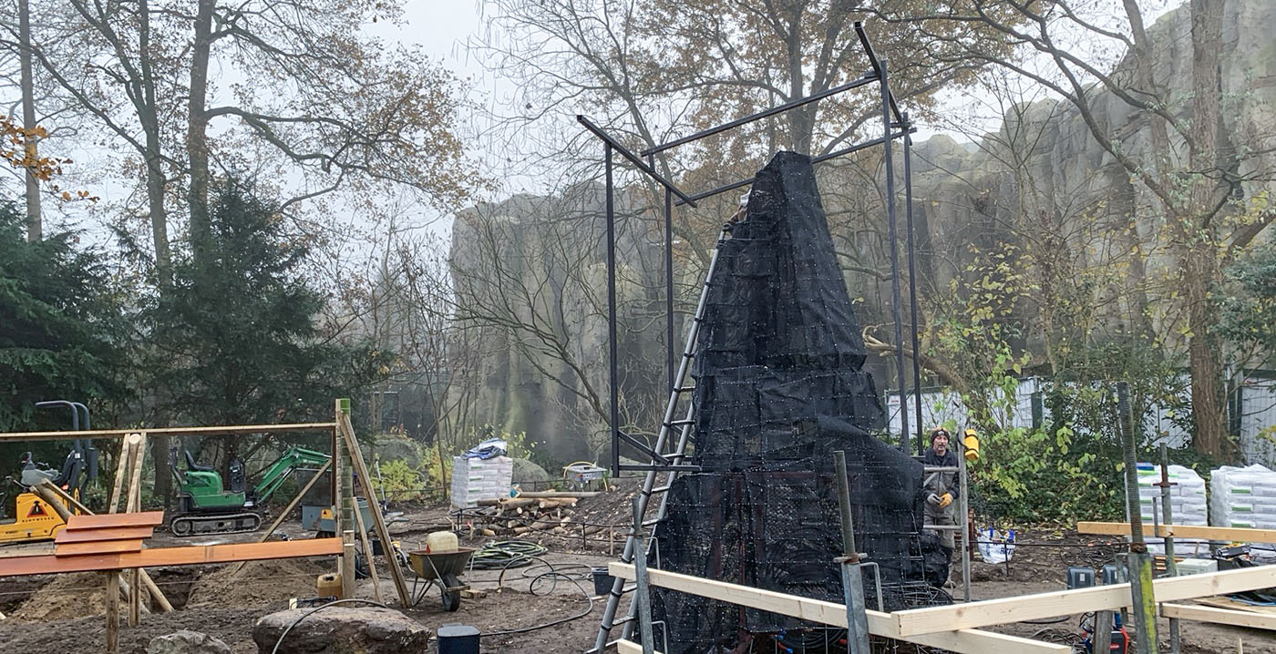 De vorm van één van de rotsen is al te herkennen, blijkt uit actuele foto's. Verder krijgt de wandelwagenstalling van Fabula hier een nieuwe plek. Over twee weken, op vrijdag 19 december, moeten de belangrijkste werkzaamheden afgerond zijn. Dan gaat het Fabula-complex weer open voor publiek.
