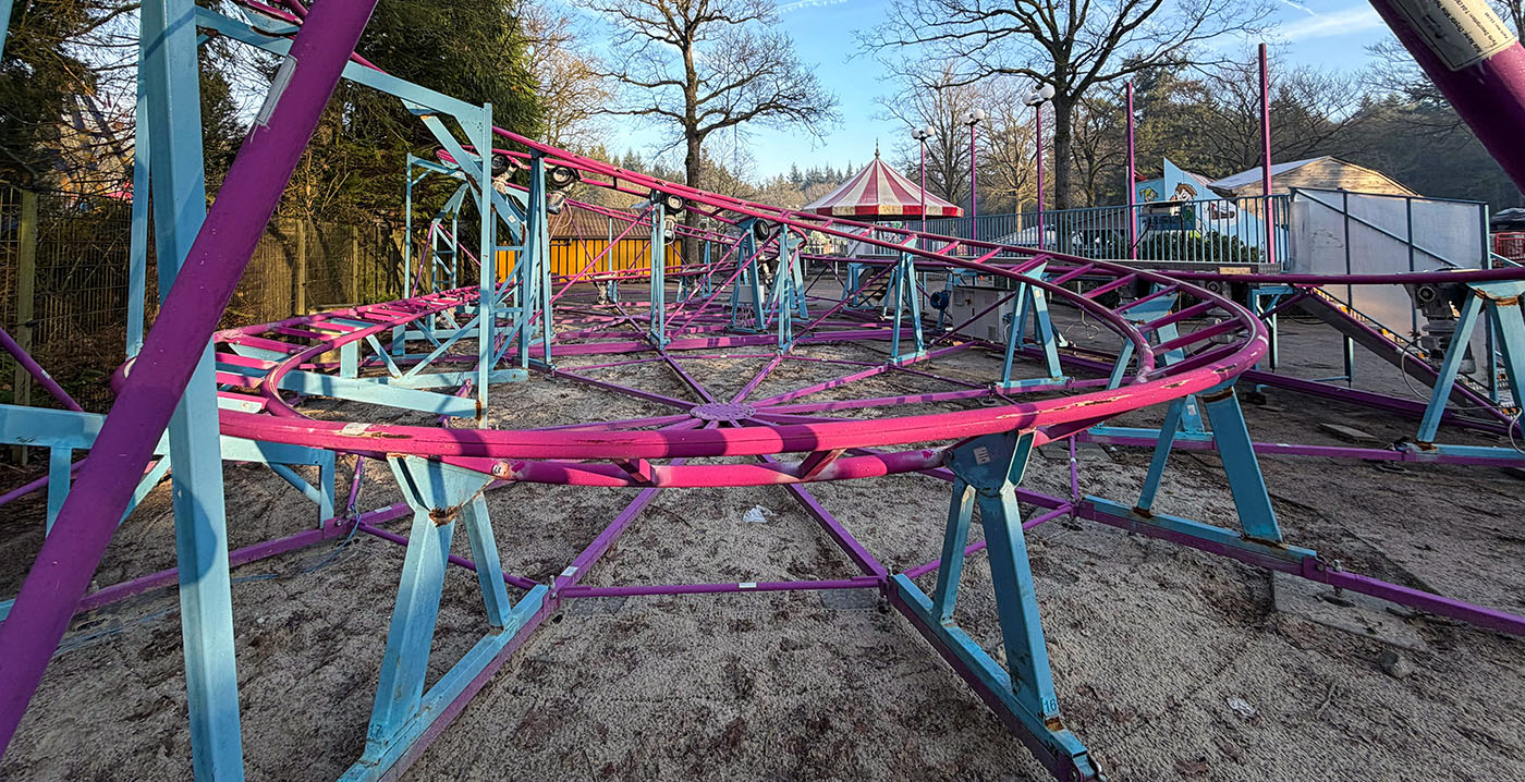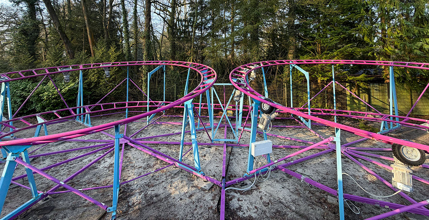 De attractie - met een roze rail en lichtblauwe ondersteuningen - is afkomstig uit de Verenigde Arabische Emiraten. Het gaat om een achtbaan van de Italiaanse fabrikant SBF-Visa. Bezoekers nemen straks plaats in een mijntreintje met vijf karretjes, waarvan het voorste bakje een locomotief is.
