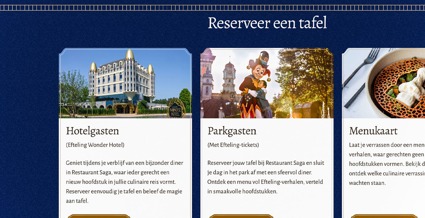 Tot nu toe was het voor dagbezoekers niet mogelijk om een etentje te boeken via de reserveringsmodule op de Efteling-website: alleen hotelgasten hadden in principe gegarandeerd plek. Wie niet bleef slapen in het Wonder Hotel en toch Saga wilde uitproberen, kon op de bonnefooi langsgaan. Dat leidde afgelopen maanden regelmatig tot teleurstellingen.