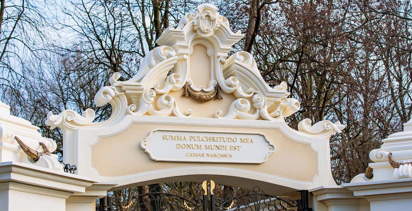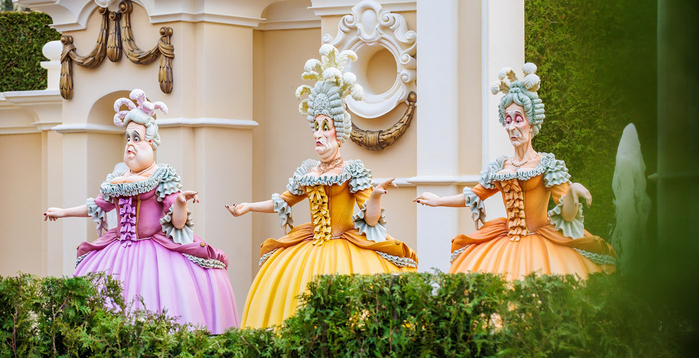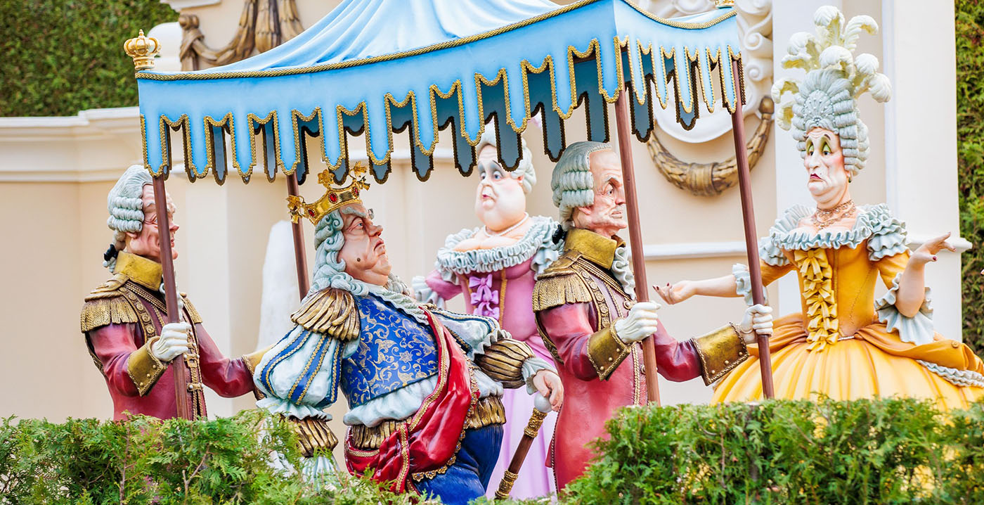 In de Efteling wordt dat sinds 2012 uitgebeeld met bewegende figuren, een schimmenspel en een vertelling op rijm. Het decor, in barok- en rococostijl tegen een paleismuur met fontein, werd ontworpen door Pim-Martijn Sanders. Hij is tegenwoordig projectcoördinator bij de afdeling decoratie.