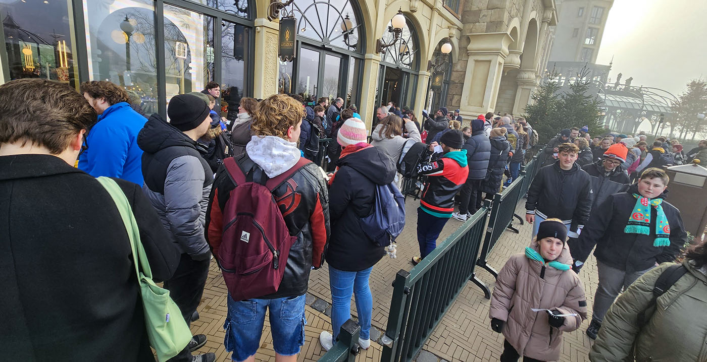 Vanaf 11.30 uur deelden medewerkers speciale vouchers uit bij groepskassa's 18 en 19, naast de hoofdentree. Personen met zo'n bonnetje waren verzekerd van één exemplaar. Ze konden zich met de voucher melden bij Arcadeau, de grote souvenirwinkel in het Grand Hotel. Voor de deur was een wachtrij gerealiseerd met behulp van dranghekken. Beveiligers hielden een oogje in het zeil.