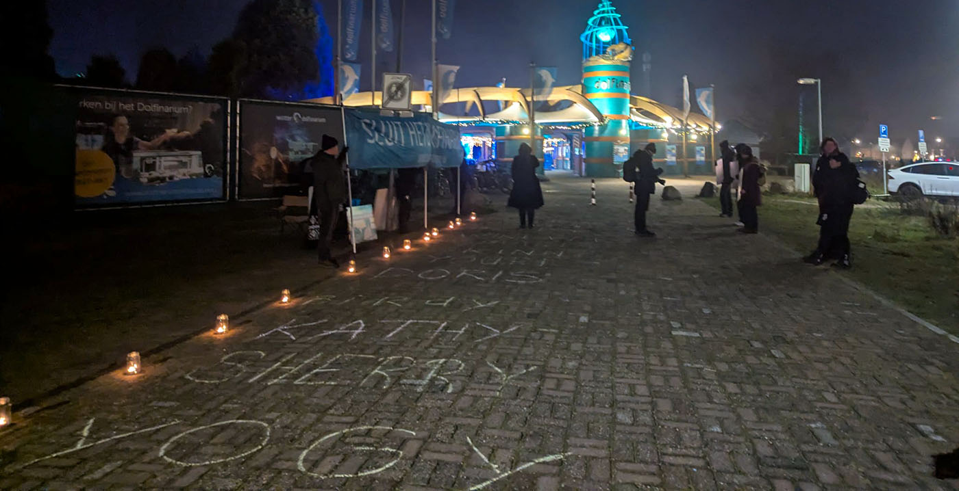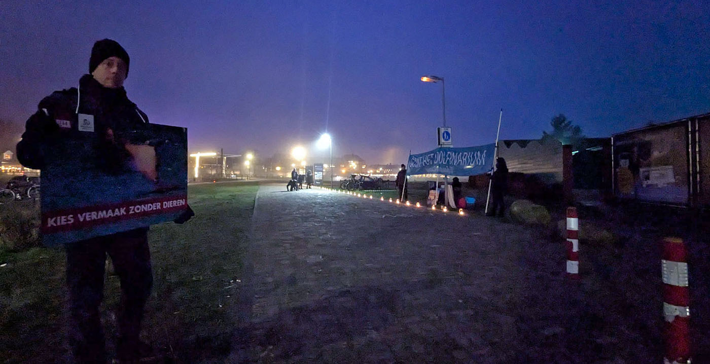 Dierenactivisten houden wake bij Dolfinarium in Harderwijk