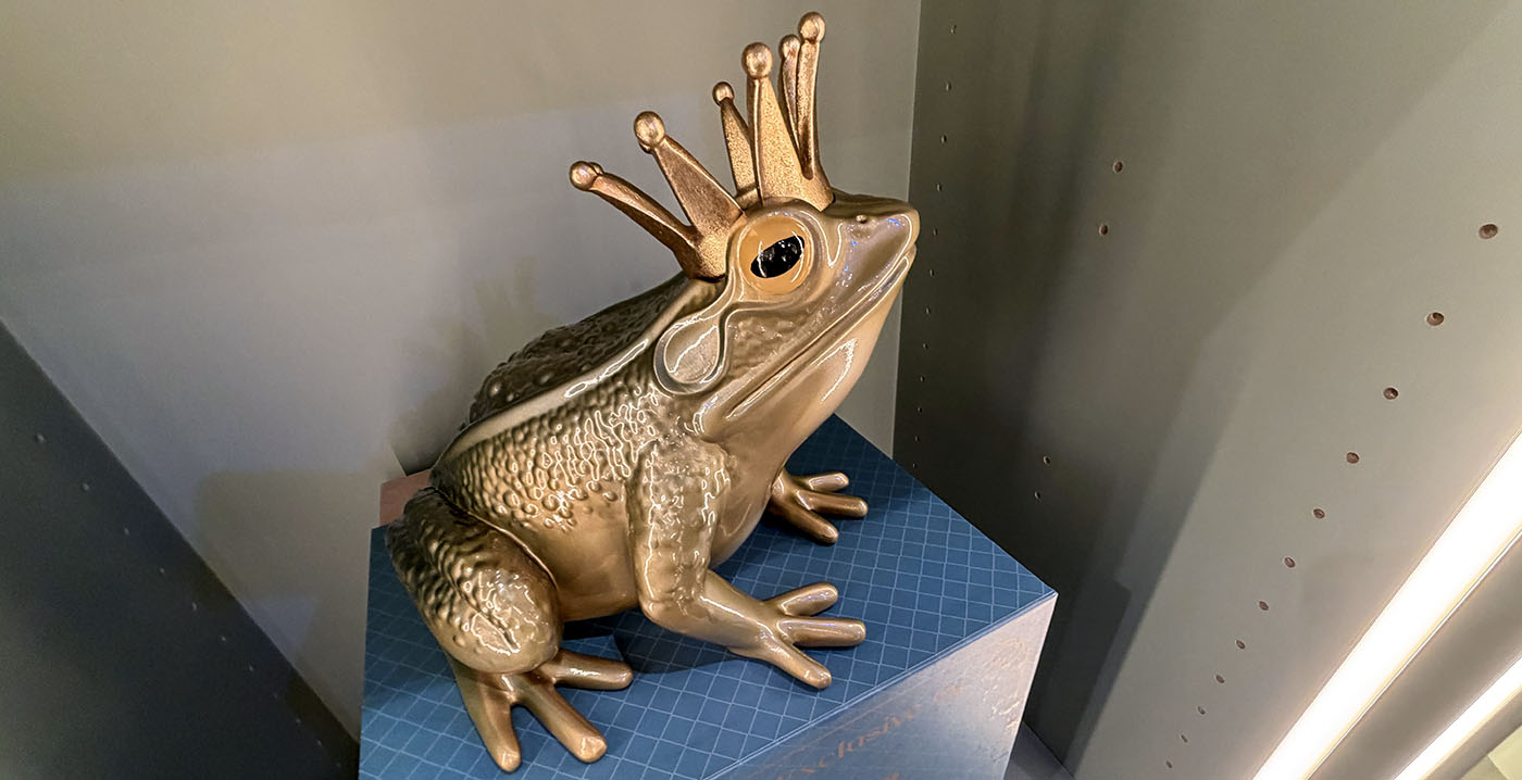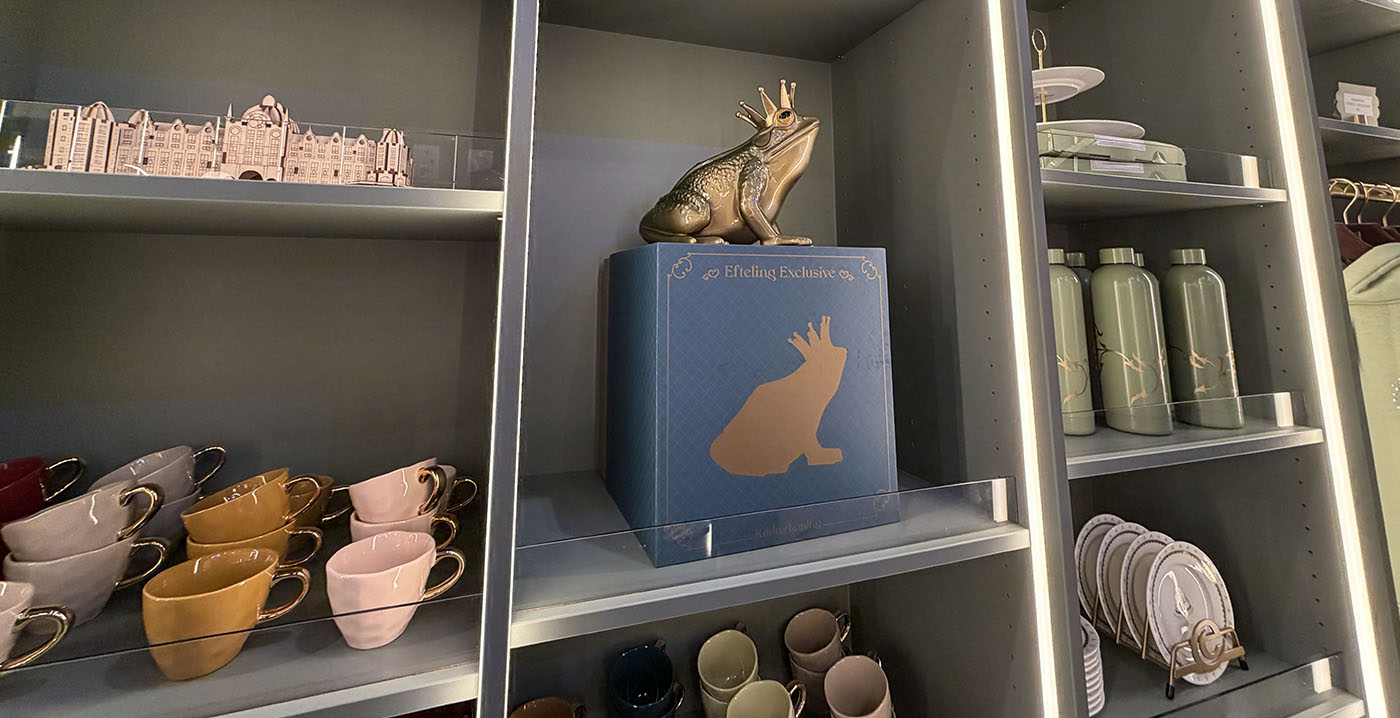 FOTO'S Een exclusief nieuw Efteling-souvenir staat in het teken van het sprookje De Kikkerkoning én watershow Aquanura. Bij souvenirwinkel Sens, de boetiek van het luxe Efteling Grand Hotel, is nu een goudkleurig kikkerbeeld verkrijgbaar, inclusief kroon. De prijs: 200 euro per stuk.