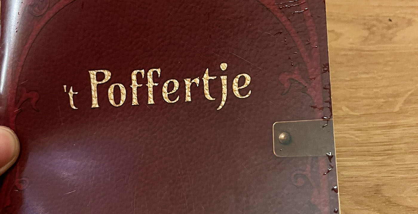 FOTO'S De nieuwe menukaart van het poffertjesrestaurant in de Efteling is vormgegeven als een "culinair reisverslag". Wie gaat eten bij 't Poffertje krijgt voortaan een boekje waarin niet alleen gerechten te vinden zijn, maar ook een bijzonder achtergrondverhaal. Een samenvatting ervan prijkt sinds enkele jaren op de gevel.