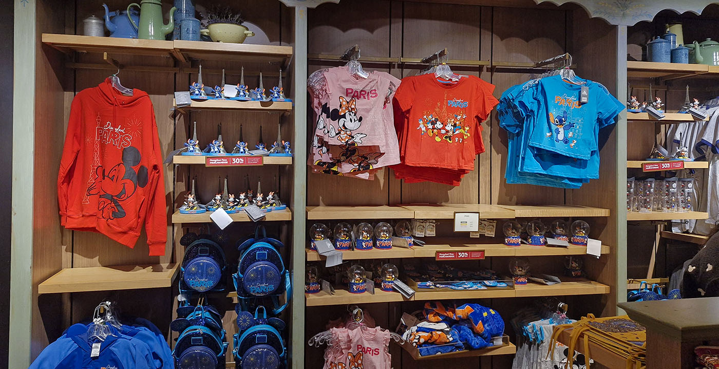 Daar zijn onder meer T-shirts, truien en schudbollen uit Disneyland Paris te koop. Verder biedt men Loungefly-tassen aan, net als beeldjes met de Eiffeltoren en Mickey, Minnie of Stitch. Wie geïnteresseerd is, kan terecht bij de shop L'Esprit de la Provence. Op dit moment geeft men 30 procent korting op de artikelen.