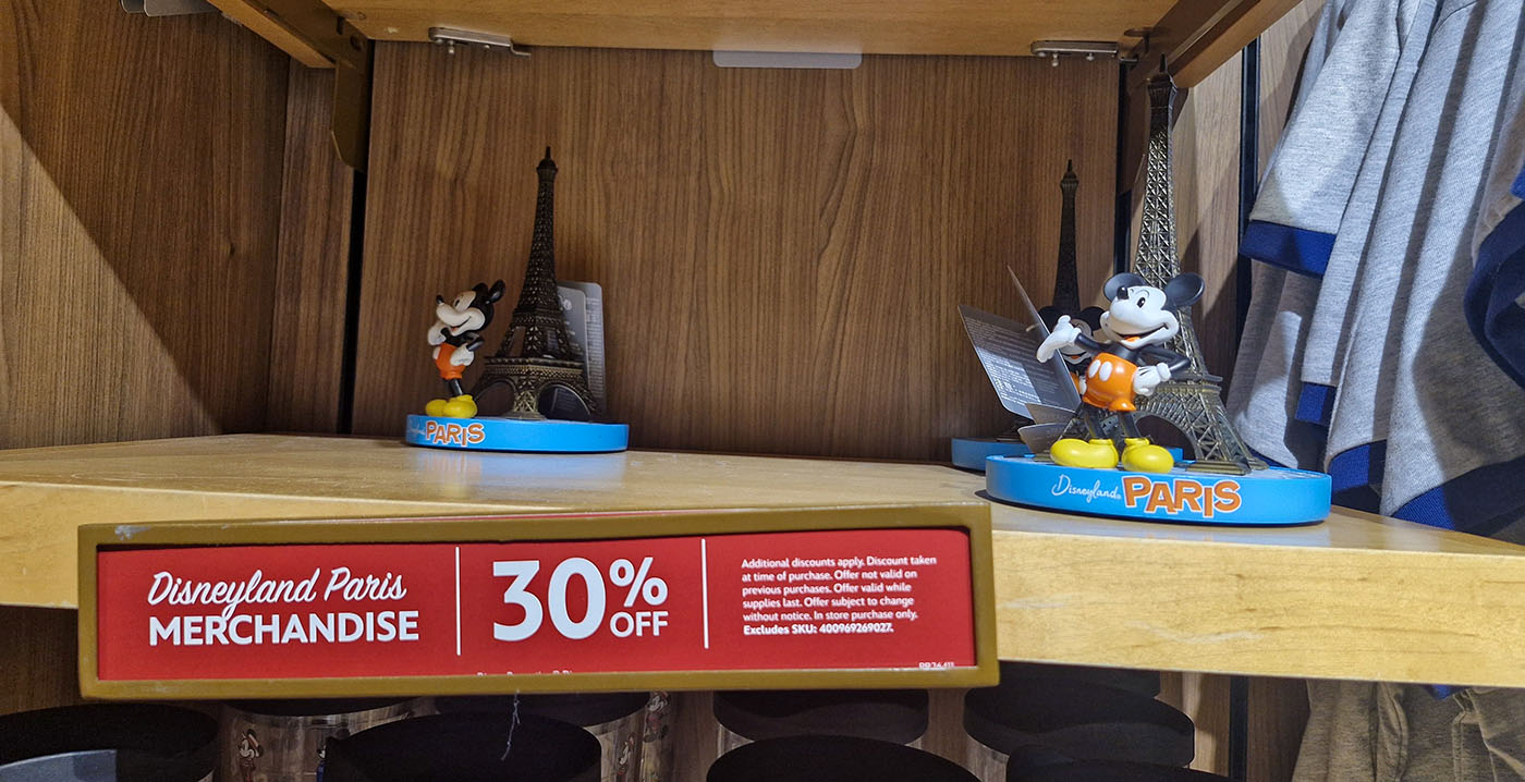 De collectie uit Parijs wordt aangevuld met algemene Franse Disney-souvenirs, speciaal gemaakt voor Epcot. Daarnaast verkoopt de winkel bij de ingang van het park Mickey-oortjes met een vermelding van Disneyland Paris en een Stitch-figuurtje.
