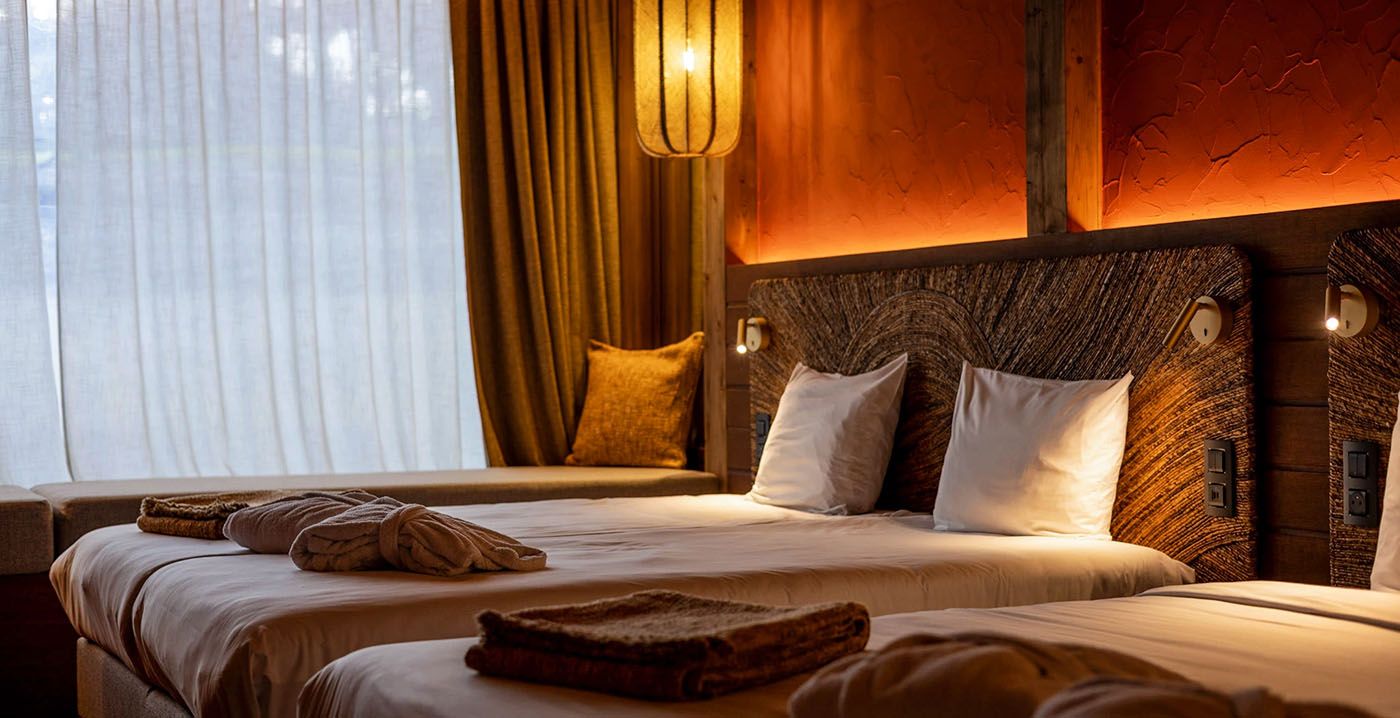 Verder zijn er kamers met uitzicht op doodshoofdaapjes (The Emerald Retreat) en op dwergnijlpaarden, drillen en reuzenotters (The Riverside Haven). Het publiek kan kiezen uit verschillende kamerindelingen, zoals familiekamers, varianten met zicht van bovenaf, oog-in-oog-ramen en aangepaste kamers voor gasten met beperkte mobiliteit. Bij enkele types wordt ook een mezzanine genoemd, een tussenverdieping.