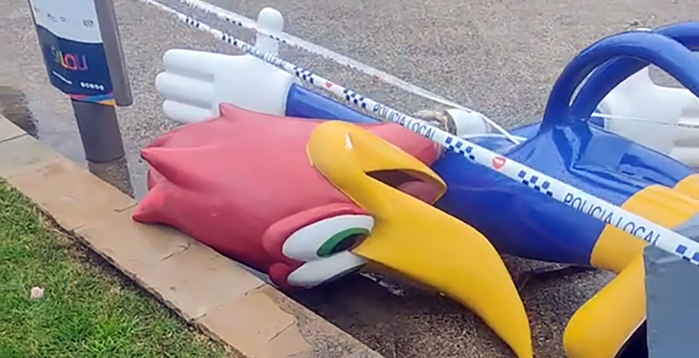 FOTO'S Woody Woodpecker, de mascotte van het Spaanse pretparkresort PortAventura World, heeft weleens betere dagen gekend. Normaal gesproken komen toeristen de goedlachse vogel tegen op de boulevard van de badplaats Salou, ter promotie van het attractiepark. Het kleurrijke beeld is onlangs omgevallen.