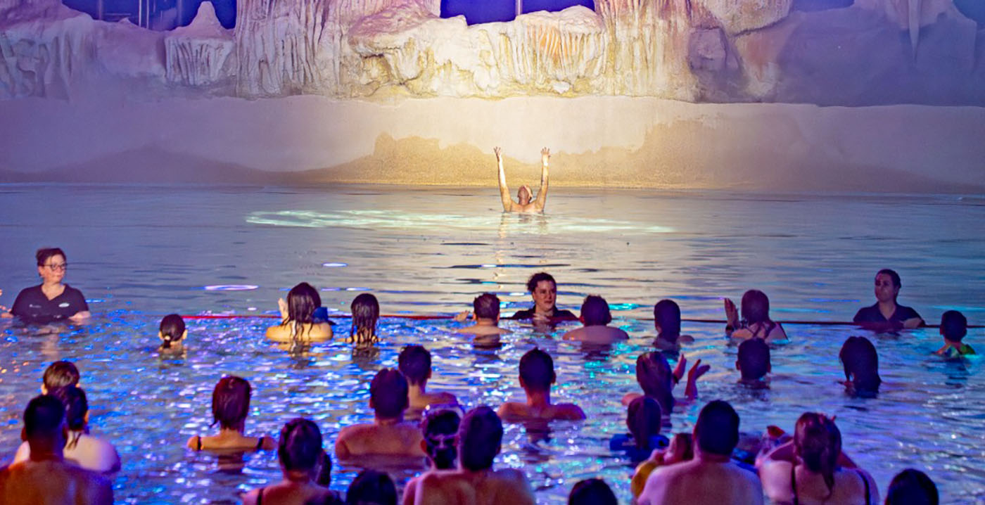Foto's: acrobatiekshow boven golfslagbad van waterwereld Rulantica in Europa-Park