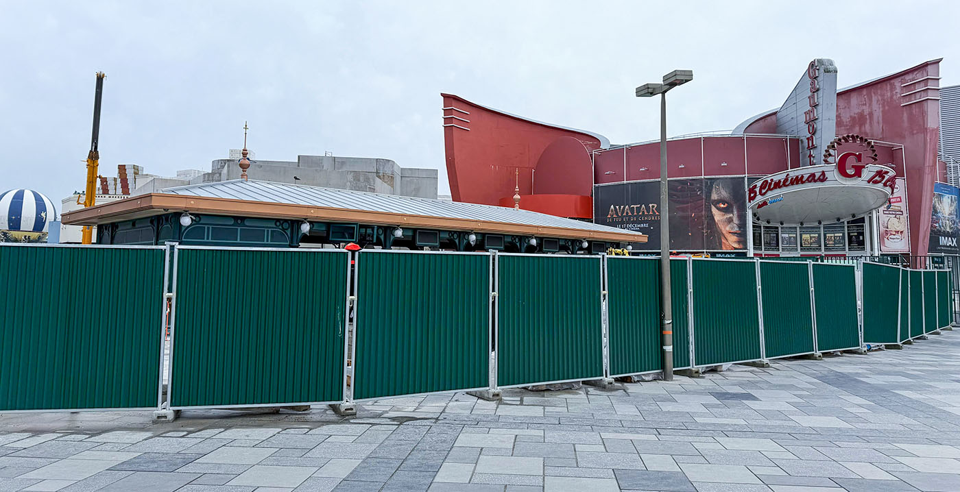 Zo zijn er schuttingen verschenen voor bioscoopcomplex Gaumont, waar de bestrating wordt vernieuwd. Ernaast verrijst het Italiaanse restaurant Casa Giulia, op de oude plek van Planet Hollywood. Een gigantische hijskraan heeft het betonnen geraamte overeind gezet.