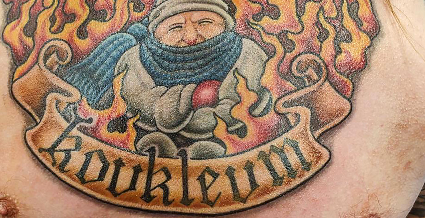 FOTO'S Efteling-tatoeages zijn er in alle soorten en maten, maar één Efteling-fan heeft gekozen voor een wel heel bijzonder ontwerp. Gerrit Mesker toont op social media een grote tattoo in de stijl van Koukleum: één van de personages uit De Zes Dienaren, het sprookje van Langnek. De tatoeage verscheen op zijn borst.