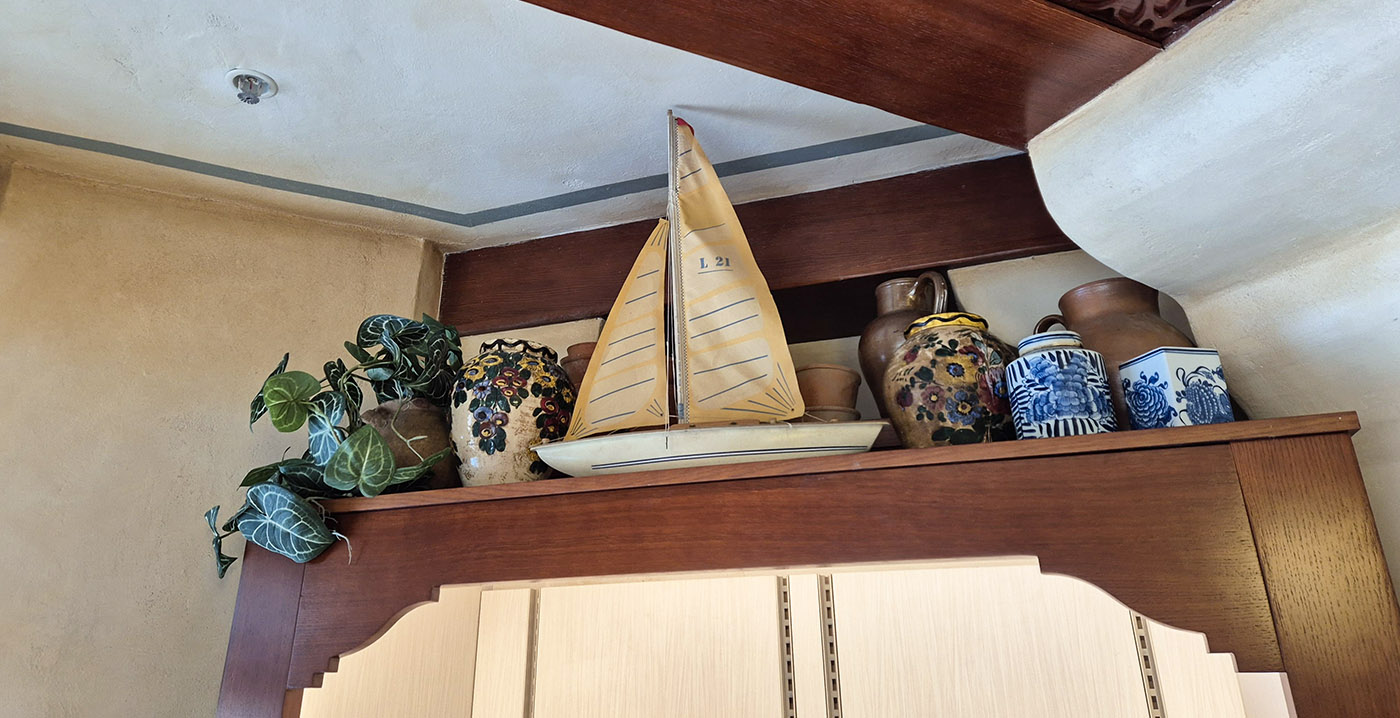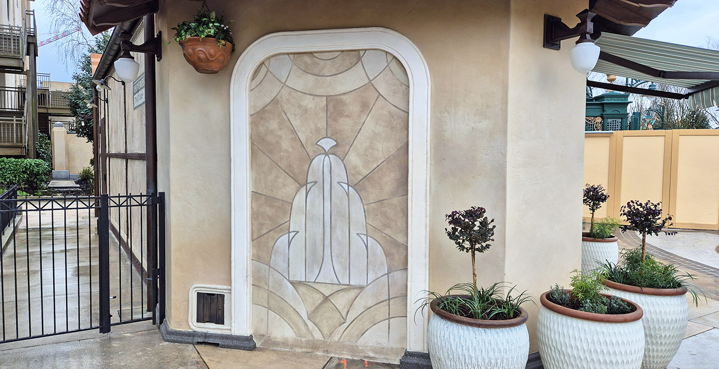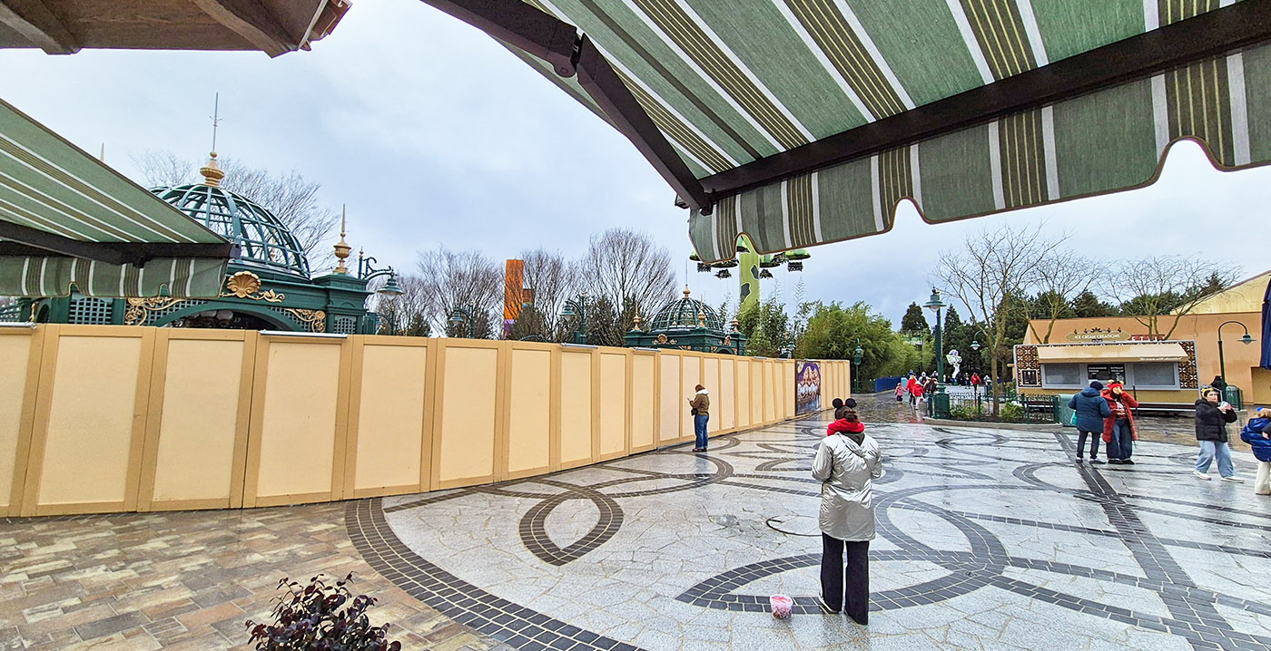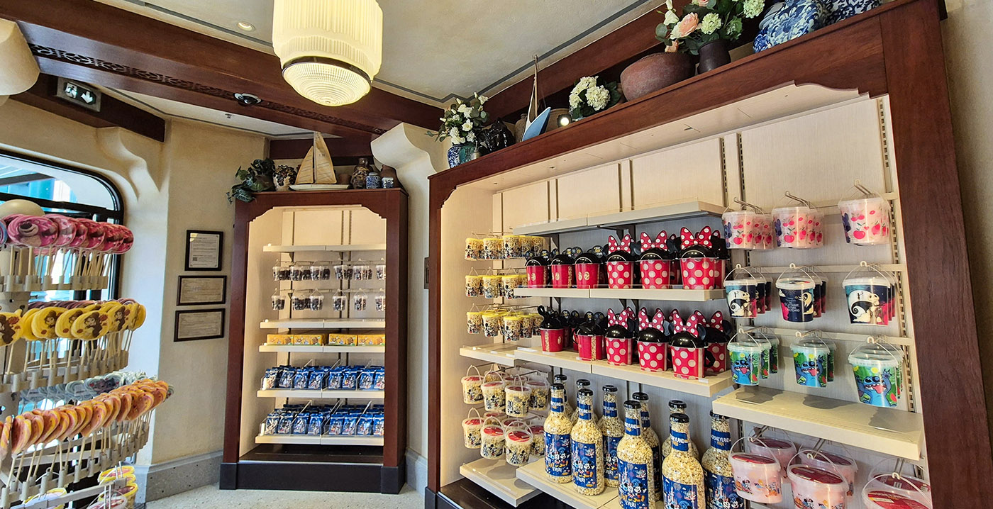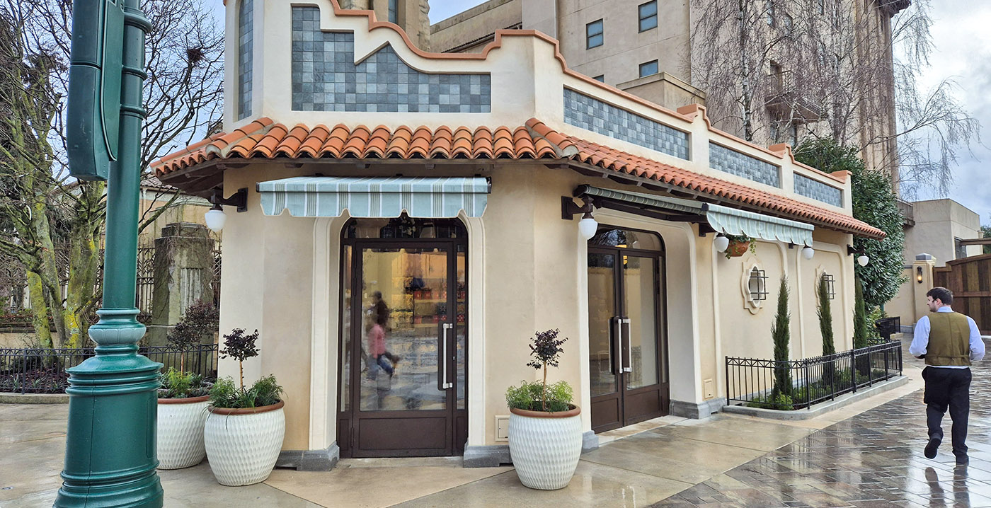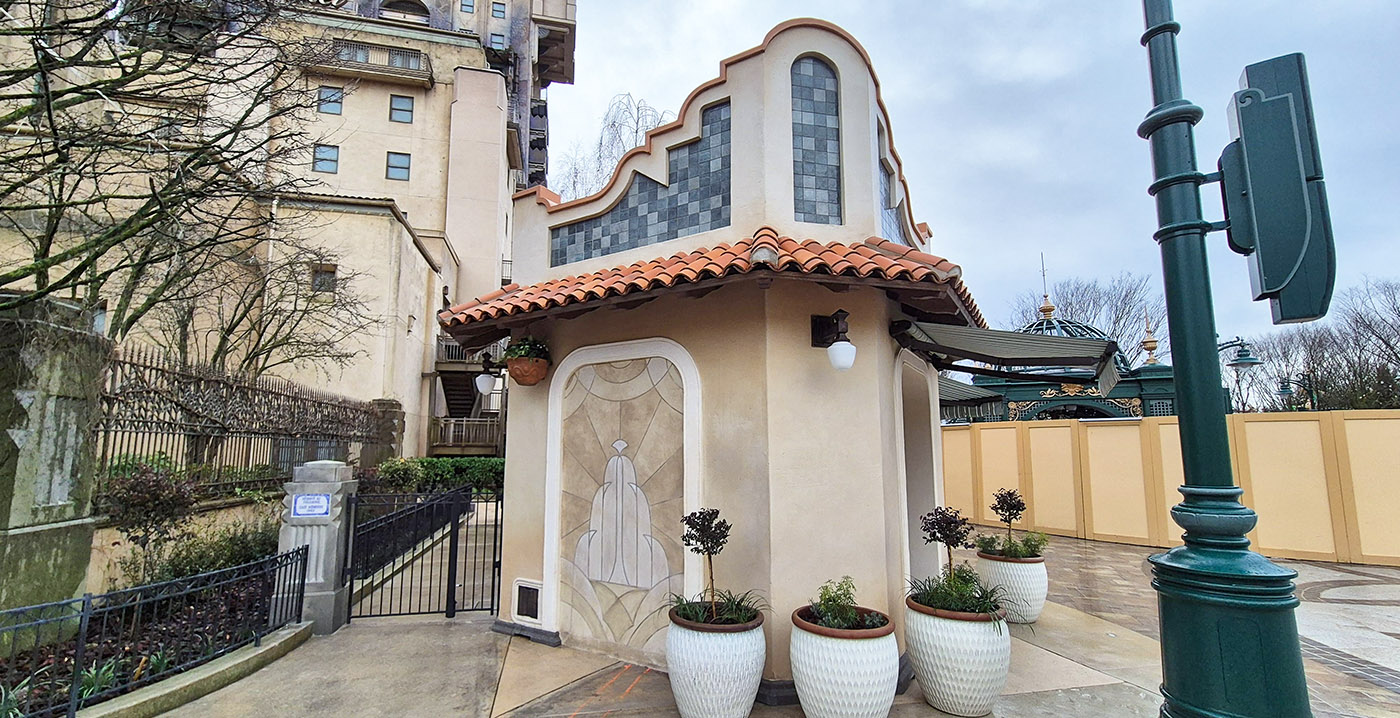 Boven enkele schappen staan miniatuurbootjes, als knipoog naar de nabijgelegen tuinen en het water van het nieuwe parkdeel Adventure Way. Die uitbreiding opent eind maart, als de naam van het park gewijzigd wordt naar Disney Adventure World. In de wachtrij van Tower of Terror werkt men nog aan een overkapping.