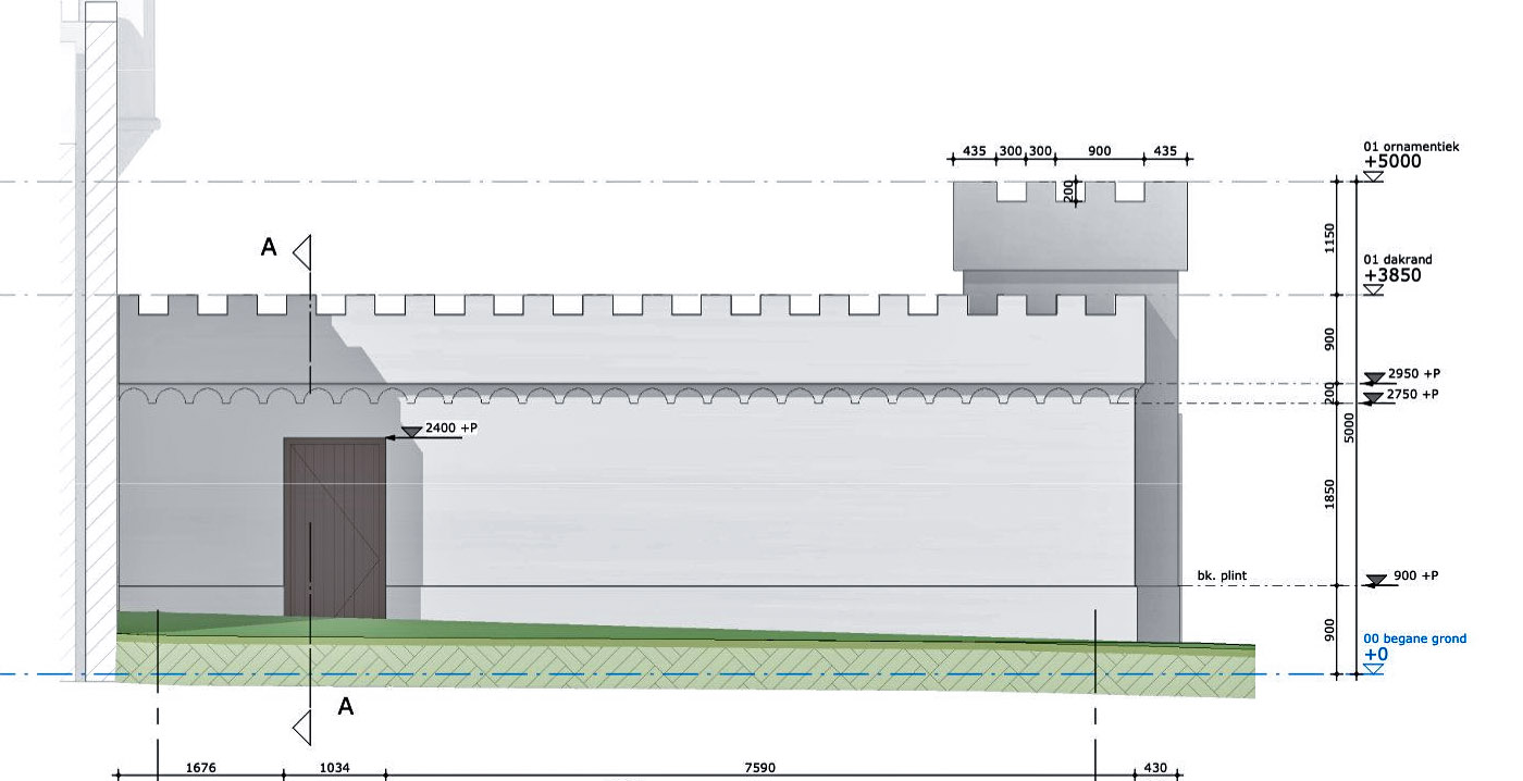 Bouwtekeningen, opgevraagd bij de gemeente Loon op Zand in het kader van de Wet Open Overheid, laten zien hoe de toiletruimte eruit moet komen te zien. We zien een vooraanzicht, twee zijaanzichten en een bovenaanzicht.