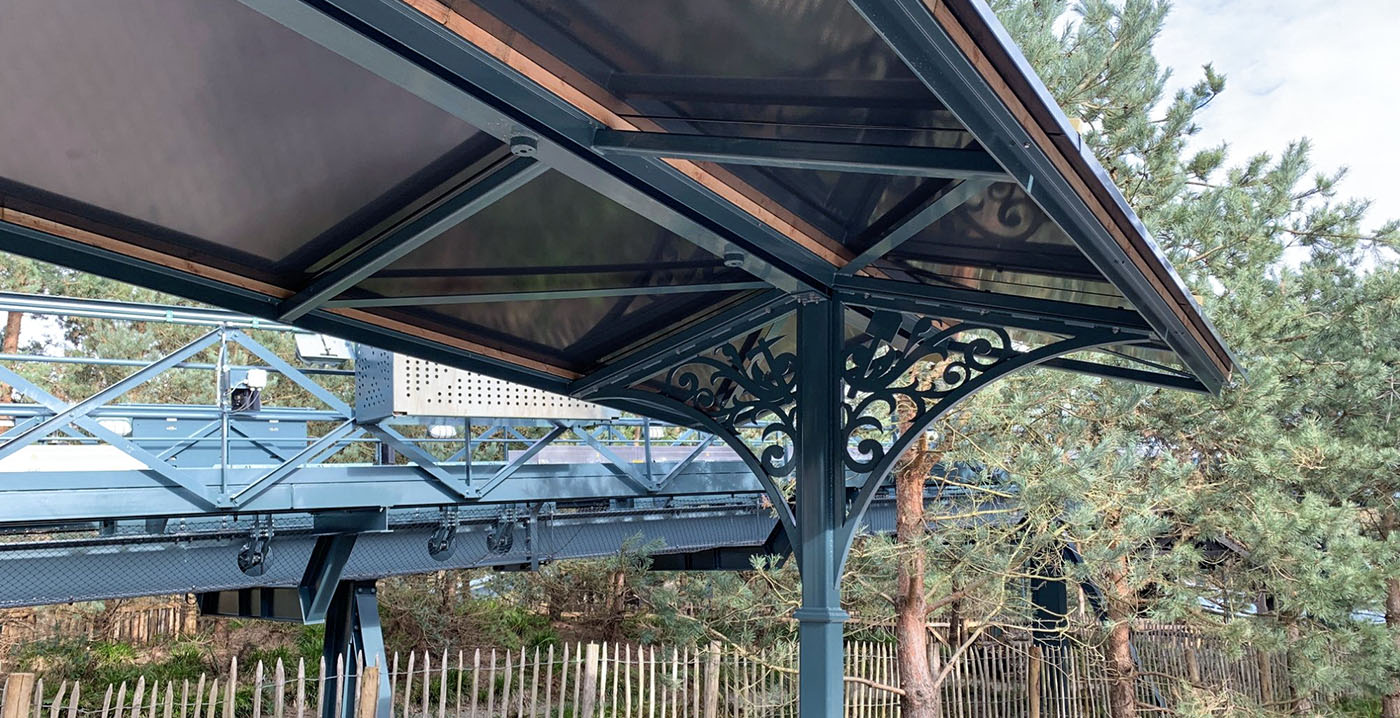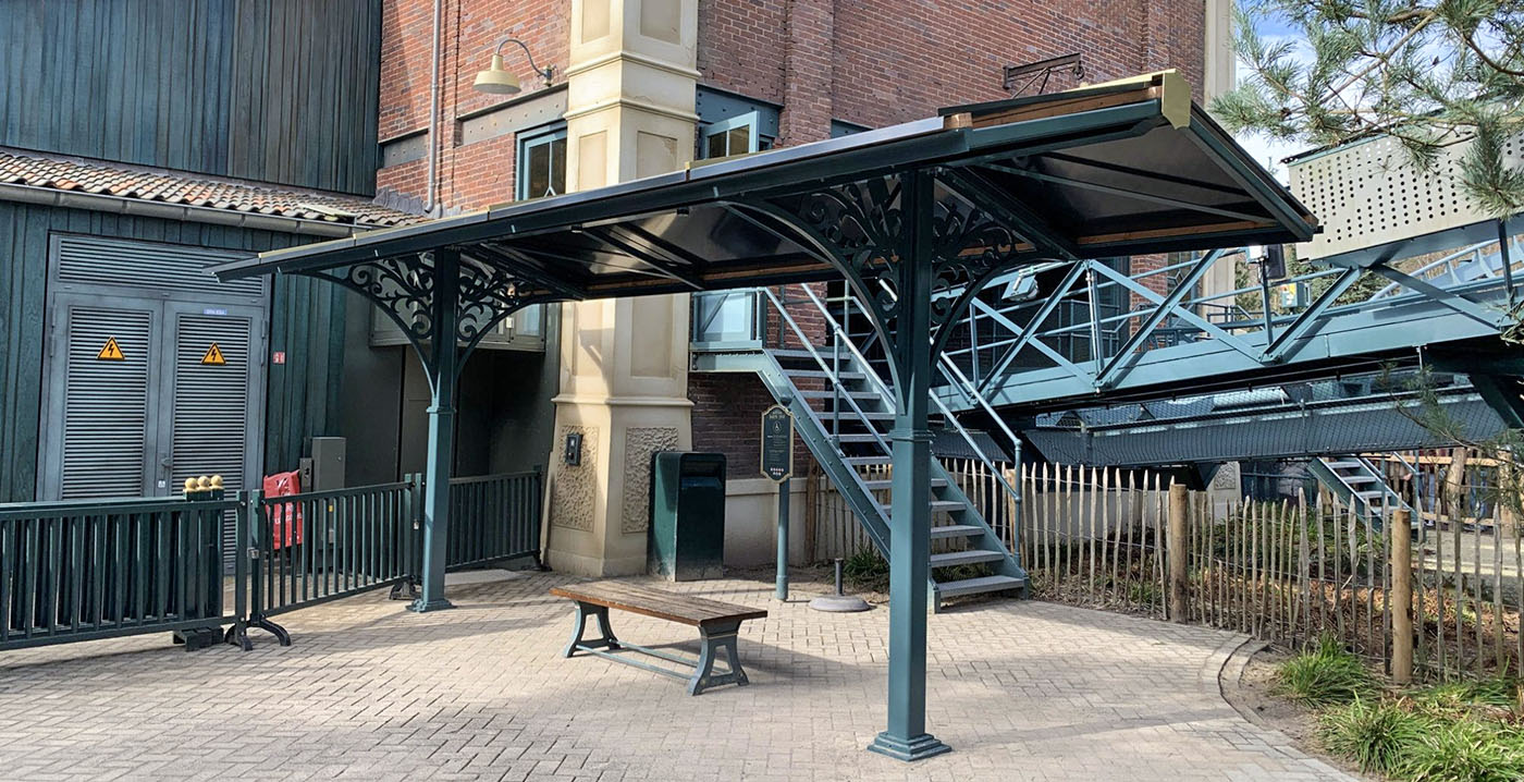 Dankzij de nieuwe overkapping staan of zitten mindervaliden en hun begeleiders beschut, tegen regen of zon. De overkapping werd uitgevoerd in de kleuren van de achtbaan, met een groenblauwe constructie en lichtgele details. Pieckse krullen zorgen voor een bescheiden thematische afwerking, waardoor het rudimentaire bouwwerk toch aansluit bij de vormgeving van de attractie.