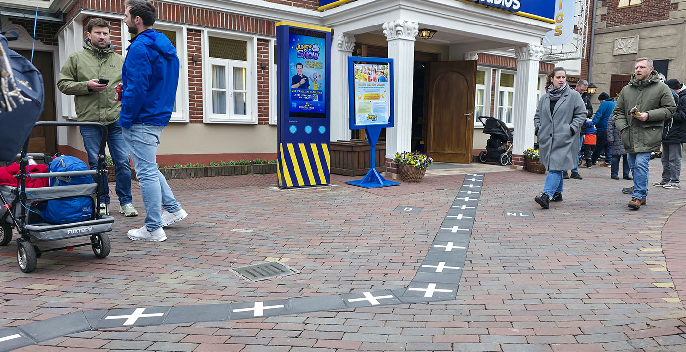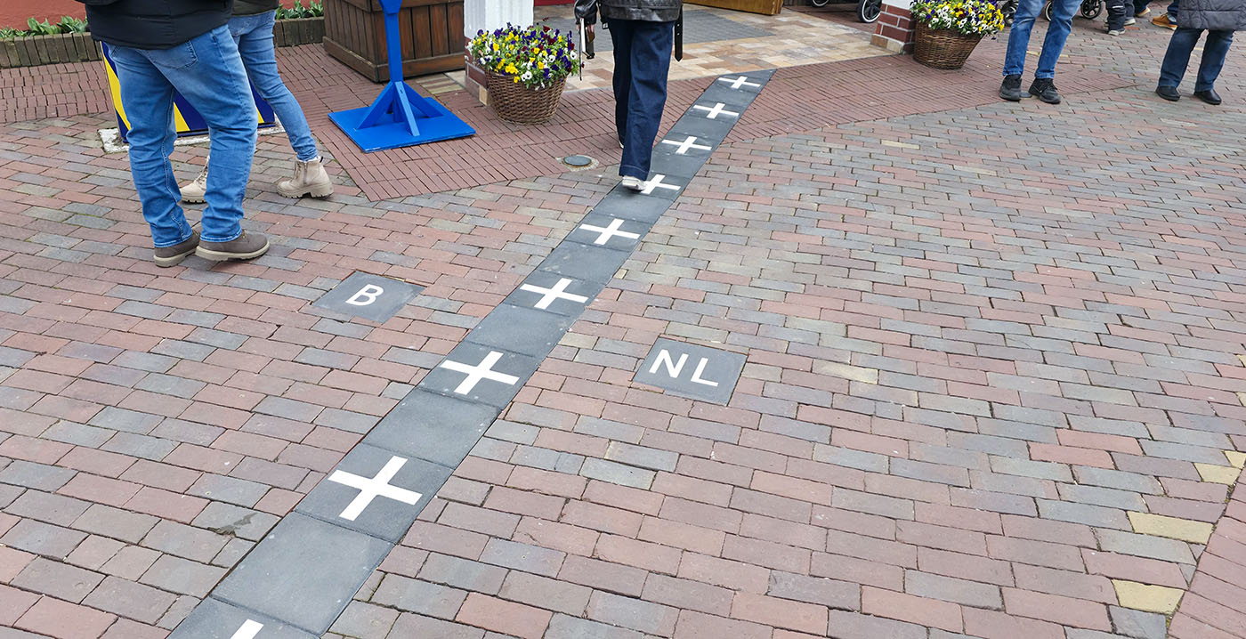 In Europa-Park is dat nagebootst met een strook met tegels met witte kruizen, waarbij aan de ene kant "NL" en aan de andere kant "B" op de grond staat - precies als in Baarle-Nassau. Bezoekers kunnen zo als het ware van Nederland naar België stappen.