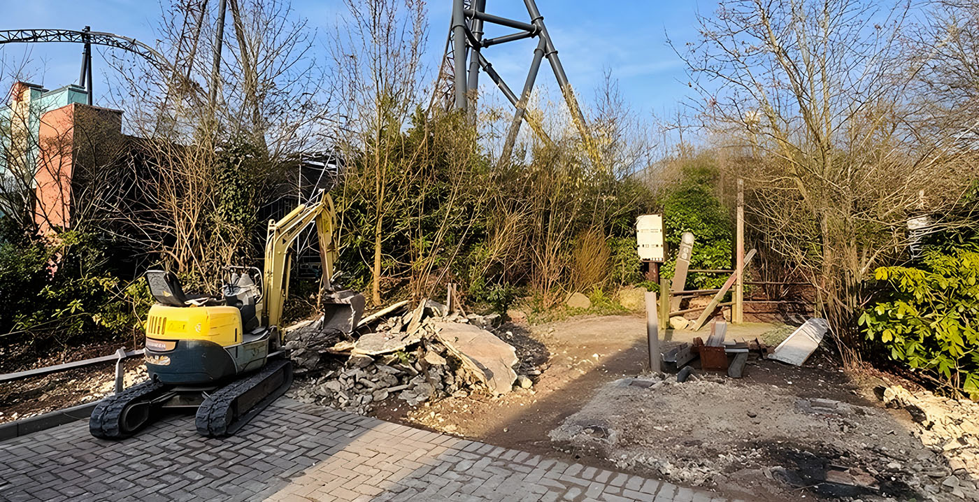De ruimte is de afgelopen jaren ook gebruikt als spookhuis voor het Halloween Horror Festival - The Curse of Chupacabra - en als dino-walkthrough onder de naam World of Dinos. Nu moeten de decors wijken voor een nieuw thema. Op beelden is onder meer te zien hoe graafmachines bezig zijn met het slopen van de oude entree.