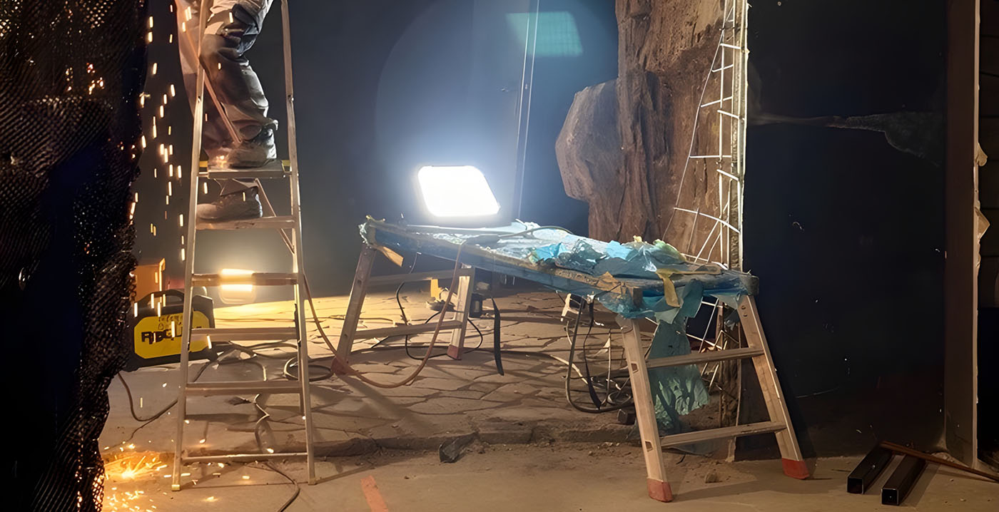 Er worden ook nieuwe wanden opgetrokken én men is bezig met het construeren van kunstrotsen. "De verbouwing is begonnen", laat Movie Park weten. "De afgelopen dagen is er volop gegraven, gelast en gewerkt - stap voor stap ontstaat hier de achtergrond voor een wel heel bijzondere blockbuster..."