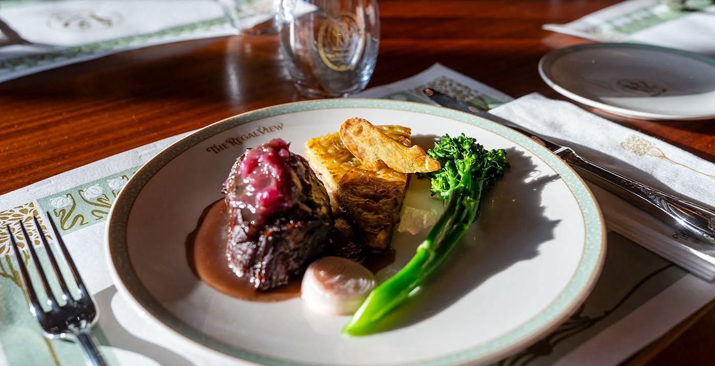 In The Regal View Restaurant & Lounge wordt gewerkt met vaste menu's. Het Menu du Chêne Royal kost 100 euro voor een voorgerecht, hoofdgerecht en dessert . Als voorgerecht kunnen gasten kiezen uit onder meer courgettevelouté met bloemkooltabouleh en okra-beignet, tonijntataki met sesam en ananaschutney of een salade met rauwe en ingelegde groenten, Grisons-rundvlees en Zwitserse kaas.
