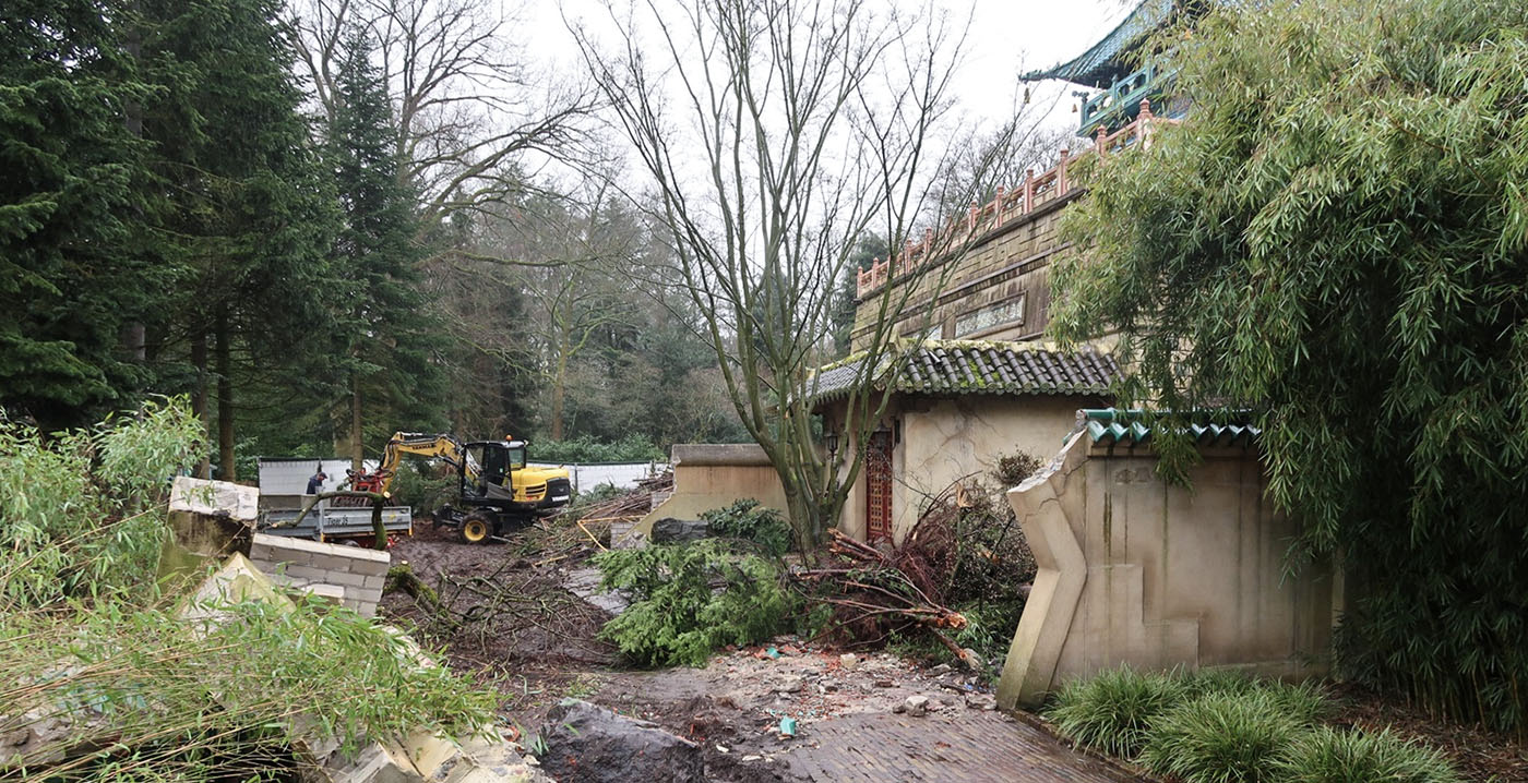 FOTO'S De Efteling maakt geen haast met het slopen van De Chinese Nachtegaal. Voordat het bouwwerk uit 1999 platgegooid kan worden, moeten er eerst nog verschillende stappen doorlopen worden. De sloop staat pas gepland voor het najaar, bevestigt een woordvoerder aan Looopings. Deze week vinden al wel voorbereidende werkzaamheden plaats in de omgeving.