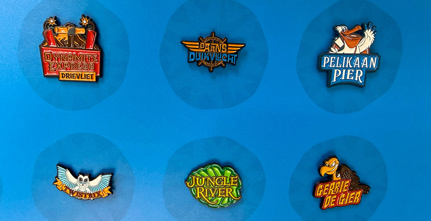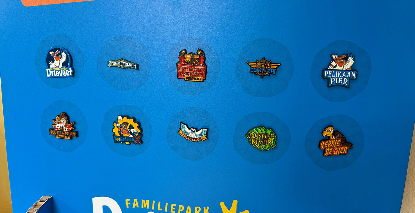 Ze staan onder meer in het teken van powered coaster Dynamite Express, wilde muis Kopermijn, lanceerachtbaan Formule X, spinning coaster Twistrix en waterbaan Jungle River. Ook halloweenpersonage Gerrie de Gier kreeg zijn eigen pin, net als de nieuwe attractie StoomCycloon, de vernieuwde zweefmolen Daans Duikvlucht en het bijbehorende themagebied Pelikaan Pier.