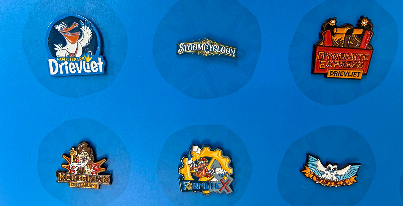 FOTO'S Het Haagse attractiepark Drievliet breidt de pincollectie uit. Vanaf aankomend seizoen zijn in de souvenirwinkel van het familiepark tien nieuwe pins verkrijgbaar, gebaseerd op attracties, personages en een themagebied. Ze kosten 5 euro per stuk. Voor de complete collectie vraagt men dus 50 euro.