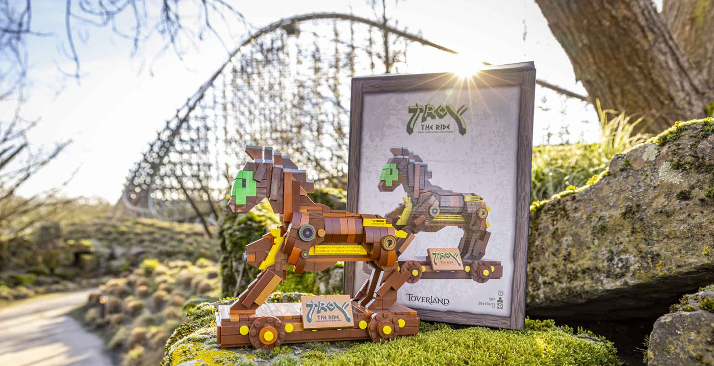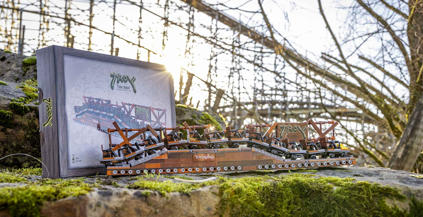 Toverland noemt het concept "Bricks": namaak-Lego. Eén van de bouwpakketten bestaat uit een complete Troy-trein, met twaalf losse karretjes van elk twee zitplaatsen. Ook het beugelsysteem is nagemaakt en kan daadwerkelijk bewegen. In totaal heeft de trein een lengte van 59 centimeter.